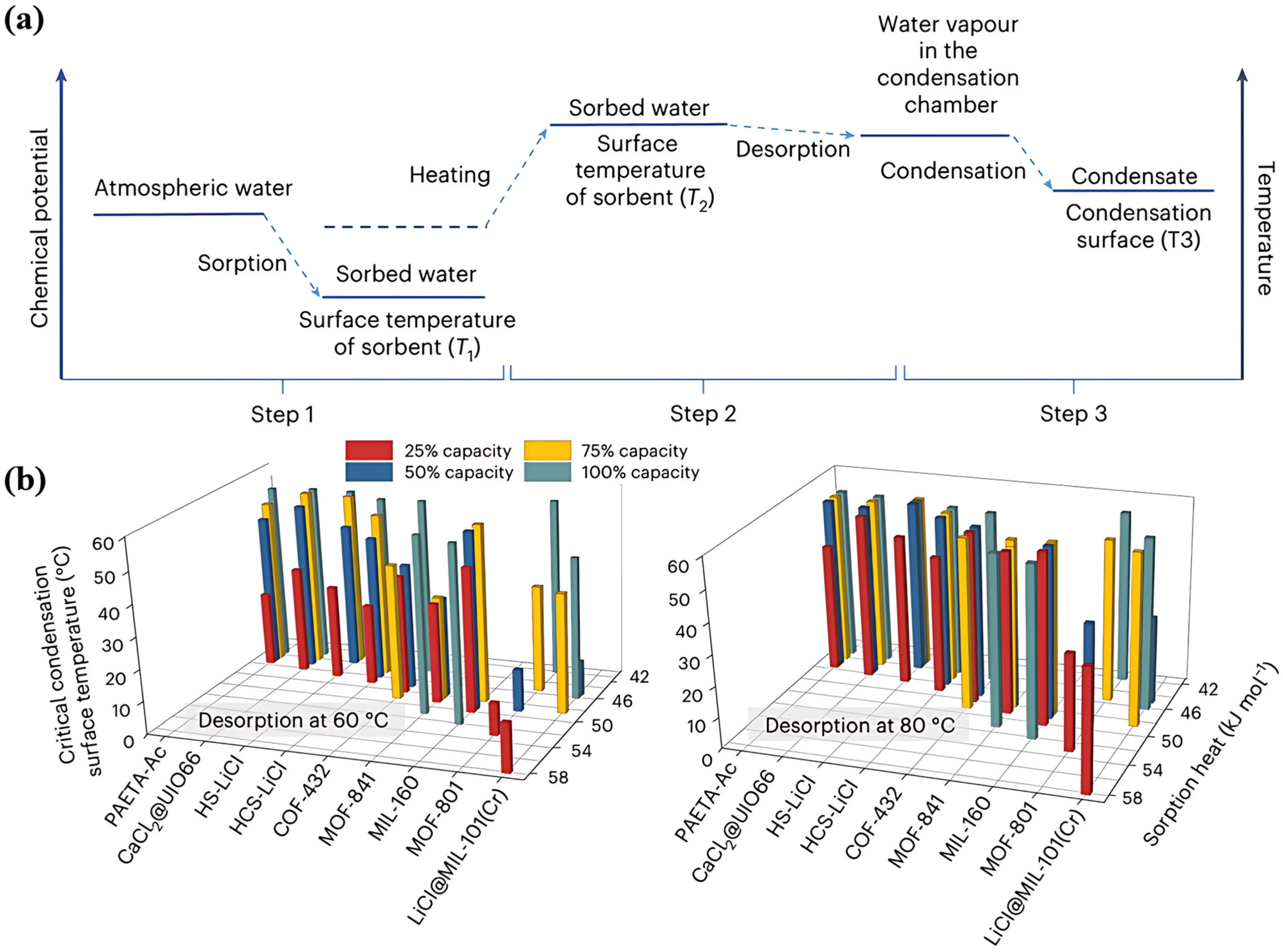 - Li, R.; Wang, P. Sorbents, processes and applications beyond water production in sorption-based atmospheric water harvesting. Nat. Water 2023, 1, 573–586. [Google Scholar] [CrossRef]