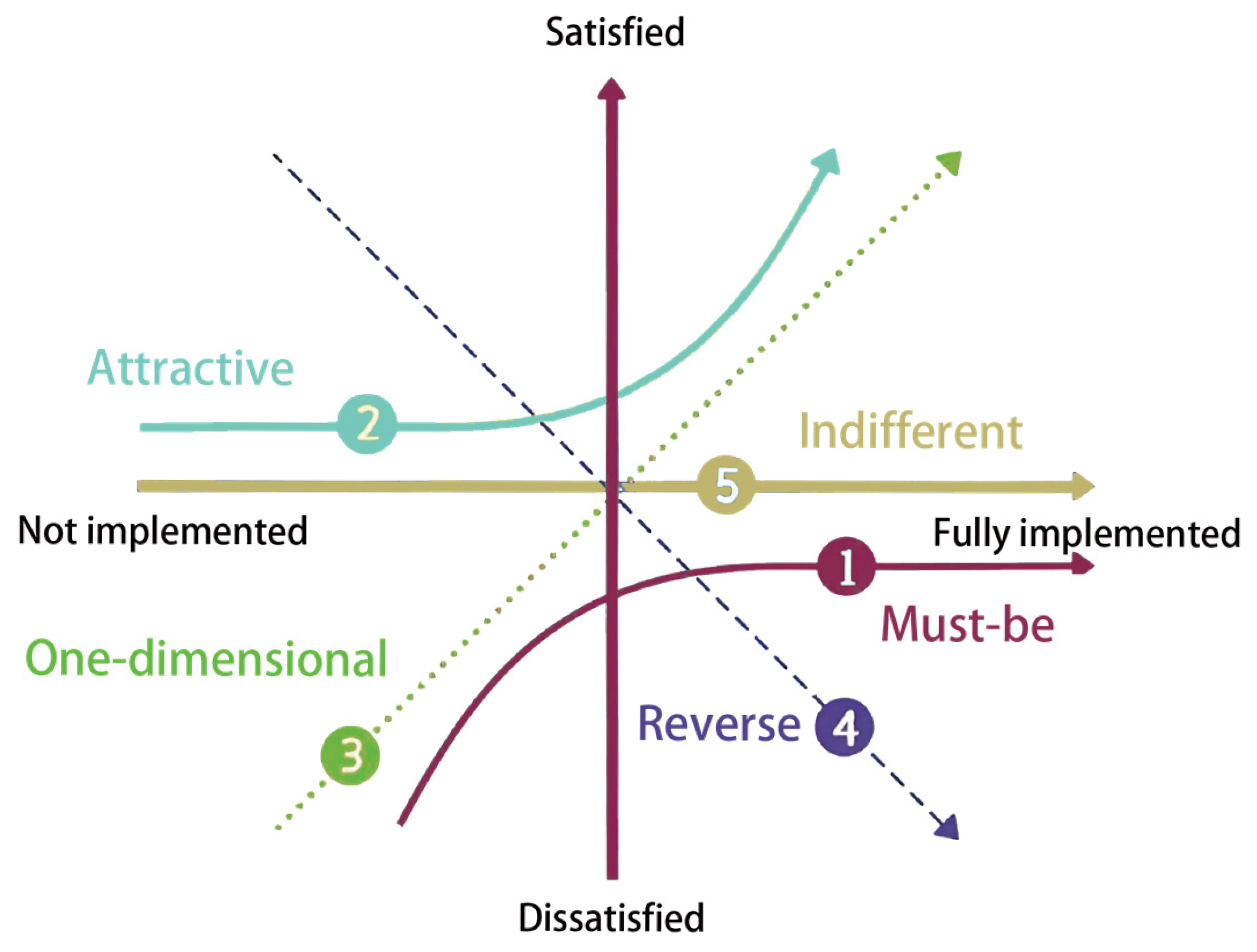 25]. Through these five attributes, the KANO model can effectively distinguish categories of product requirements. Internationally, it has been widely applied in product planning and service design to improve customer satisfaction [