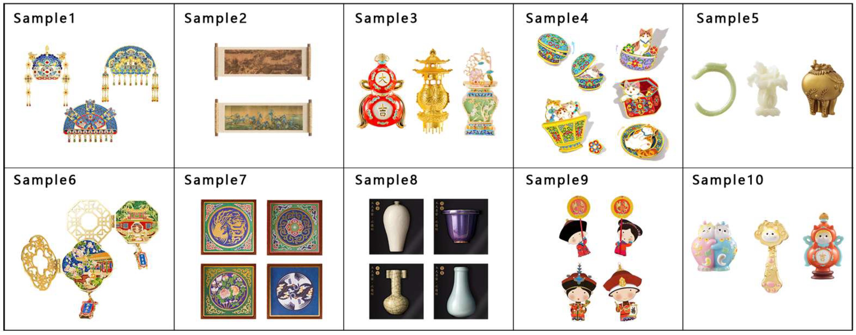 https:/gugong1925.jiyoujia.com (accessed on 20 May 2025)) as sample design alternatives to ensure representativeness and data comparability. Sample images are shown in