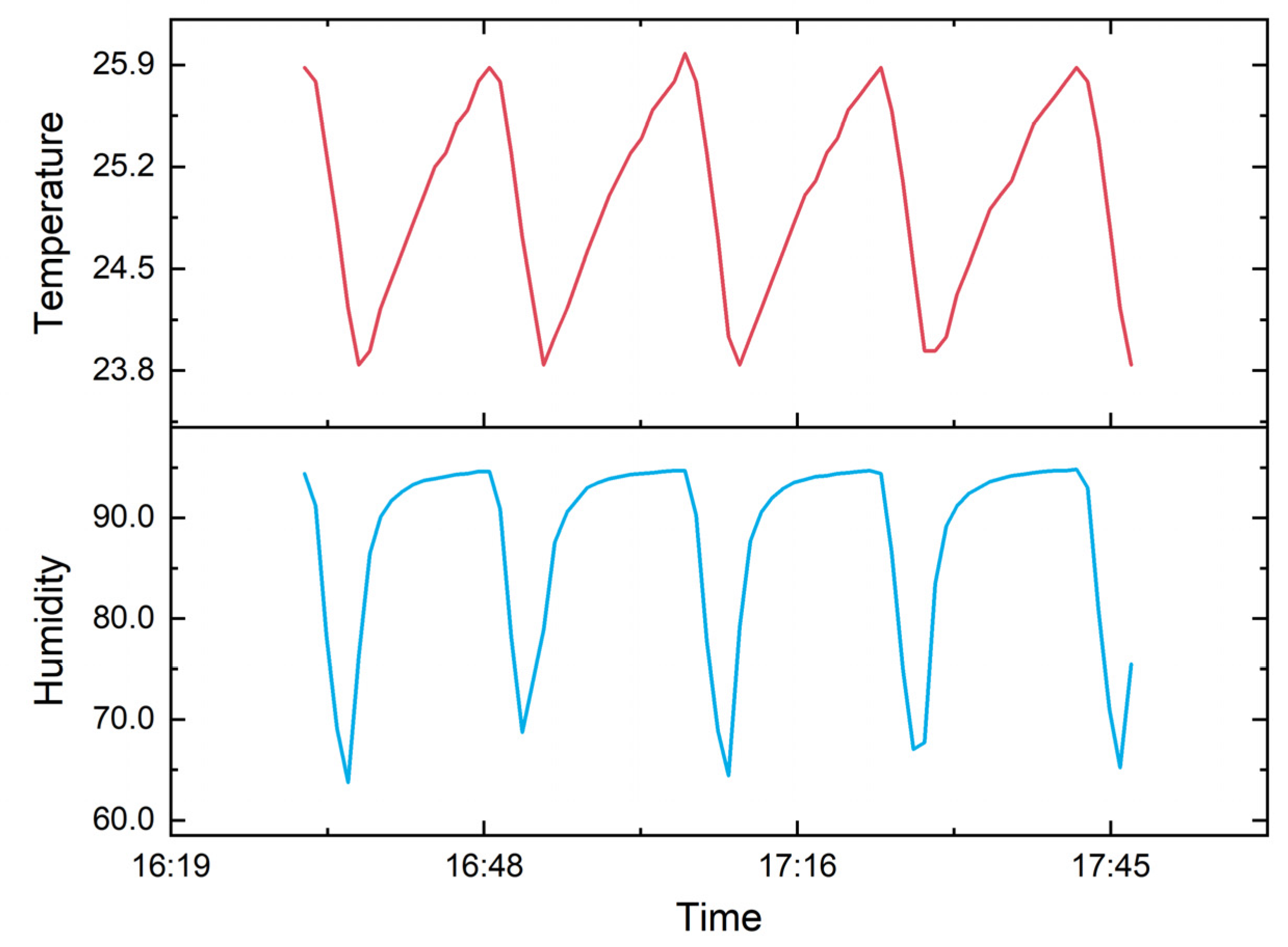 | Ultrasonic humidifier | 400 mL h−1 output | Generates fine mist to control internal humidity |