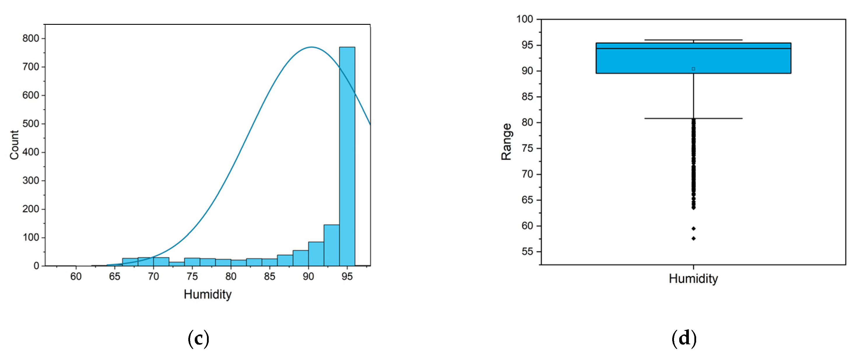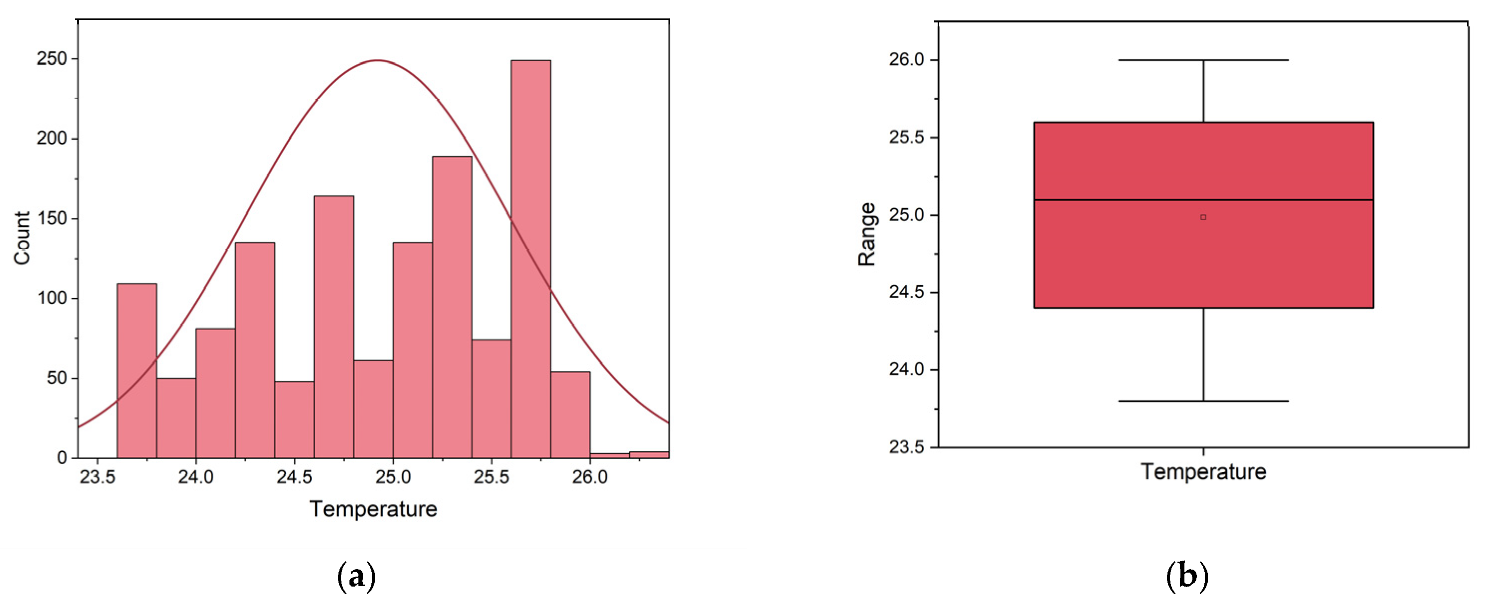 - Liu, T. Digital-Output Relative Humidity & Temperature Sensor/Module DHT22 (also Named AM2302); Aosong Electronics: Guangzhou, China, 2013; Available online: https://ardustore.dk/error/DHT22%20Datasheet.pdf (accessed on 12 September 2025).