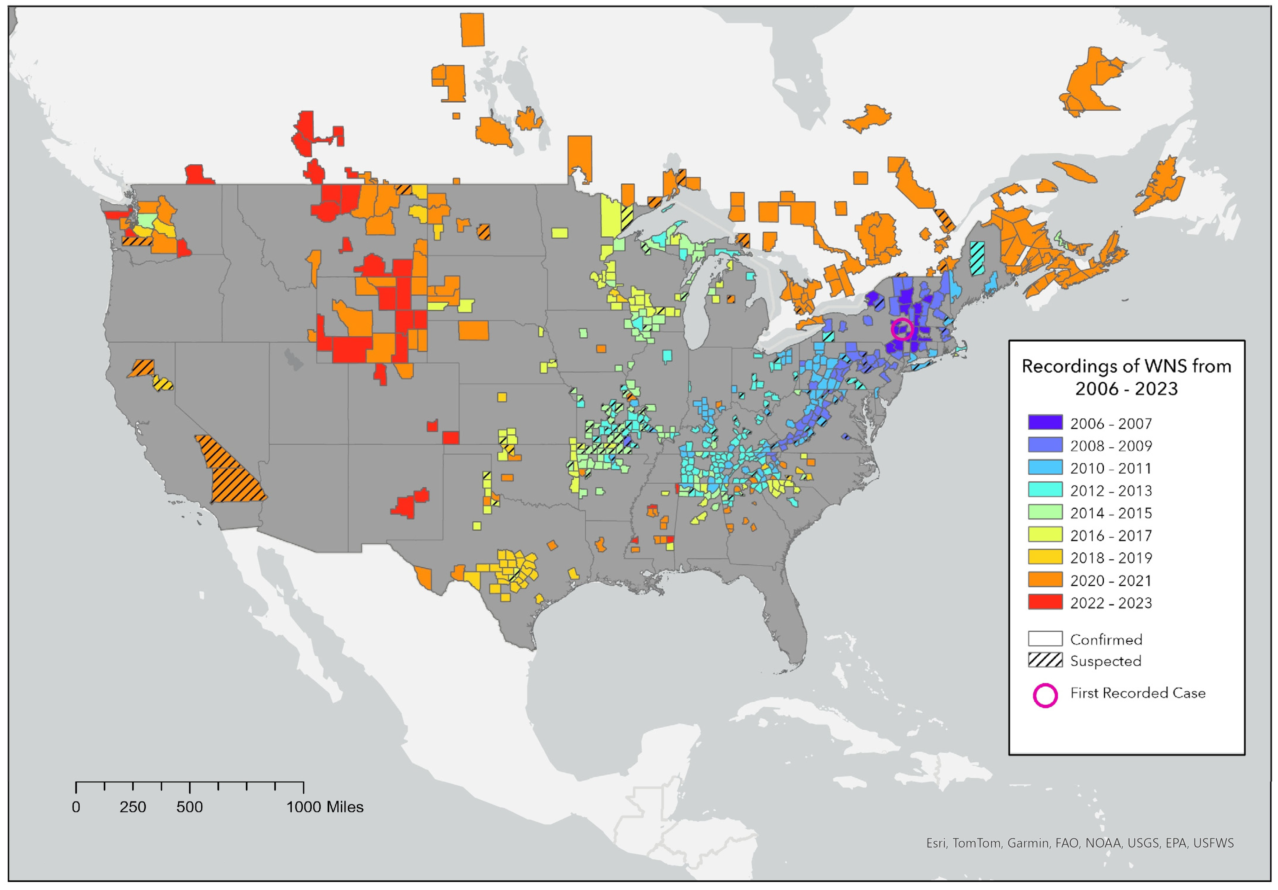 - Cheng, T.L.; Reichard, J.D.; Coleman, J.T.; Weller, T.J.; Thogmartin, W.E.; Reichert, B.E.; Bennett, A.B.; Broders, H.G.; Campbell, J.; Etchison, K.; et al. The scope and severity of white-nose syndrome on hibernating bats in North America. Conserv. Biol. 2021, 35, 1586–1597. [Google Scholar] [CrossRef]