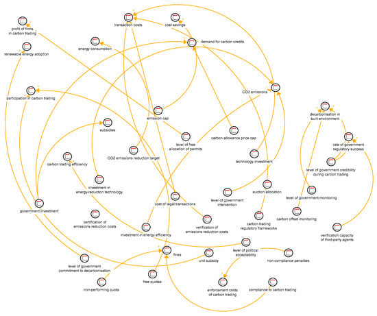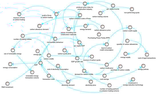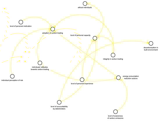 “Personal” and “relational” category input variables of carbon trading involve personal and relational aspects, respectively, of carbon trading in construction. Personal carbon trading underscores the rights and roles of consumers through household use of energy [28]. It operates on the idea that individuals are allocated a carbon quota. The quota can be used entirely or partially sold to others [29]. Relational category explains the relationship between stakeholders in the carbon trading scheme [30]. Stakeholders for carbon trading in the construction industry include central government, local government, construction firms, individuals, environmental protection departments, non-governmental organizations, financial institutions, etc. [31].