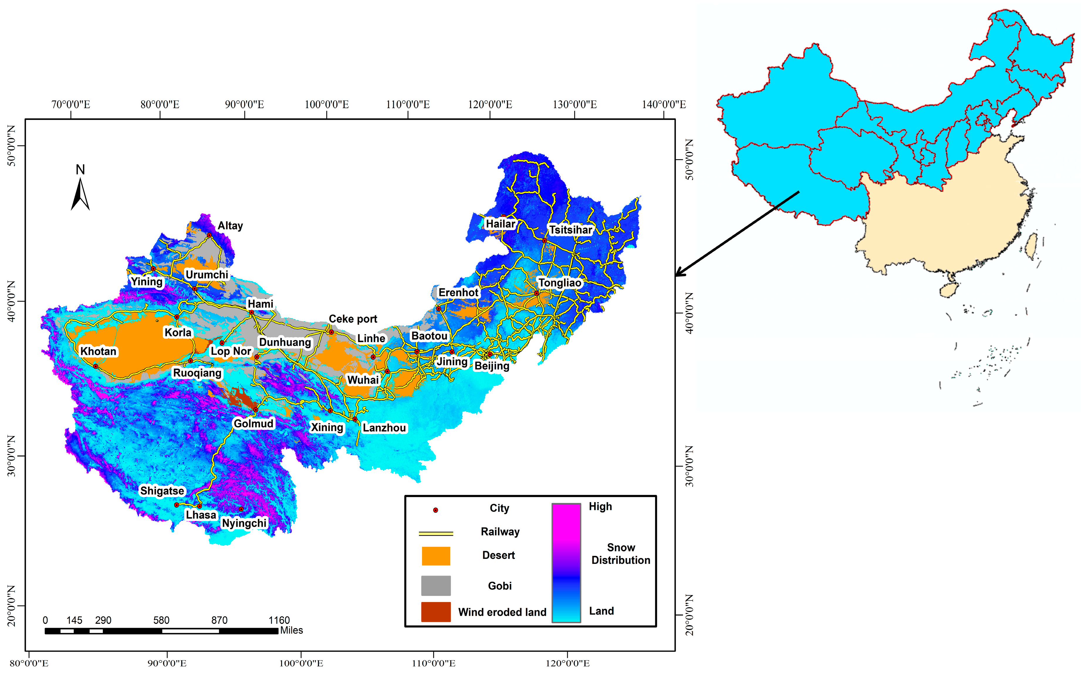 8] alone, but rarely examine the compound disasters resulting from their interaction. Wind–sand flows and snow drifts are important natural disaster-causing factors that can be highly harmful to traffic lines [