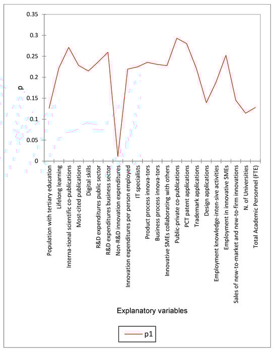 The first analysis aims to mainly measure the contribution of each variable to explain the regional European Innovation Scoreboard. To order to make the measurement, it is necessary to examine the p-vectors that are derived from the estimation of the model and are shown in Table 2.