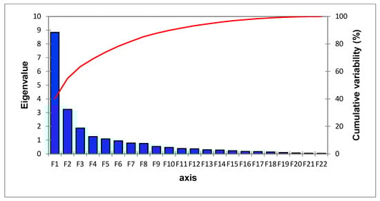 Table 4 and Figure 6 show that the first two factors explain 54.87% of the EIS, while the contribution of the subsequent factors gradually becomes residual. Studying the spatial dynamics of the EIS with respect to these two factors provides us with a good degree of reliability.