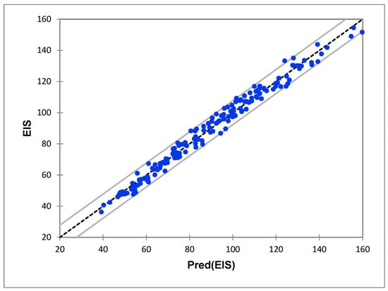 The PLSR model works well in the presence of series that may present multicollinearity and non-heteroscedasticity problems. Figure 3 and Figure 4 show that the condition of homoscedasticity of the data appears to be fulfilled. Homoscedasticity occurs when the residuals are uniformly distributed around the zero line with no obvious pattern.