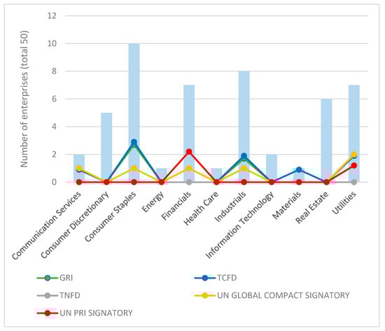 The spread of sustainability standards among EU companies by sector (compiled by the authors based on the Bloomberg database).