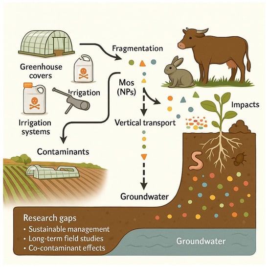 Despite the increasing body of evidence demonstrating MP mobility under realistic agricultural conditions, there remains a pressing need for long-term field studies. Such investigations are vital for understanding the cumulative impacts of repeated plastic inputs, climate variability, and biological interactions, and for designing effective strategies to mitigate microplastic pollution in agricultural soils.