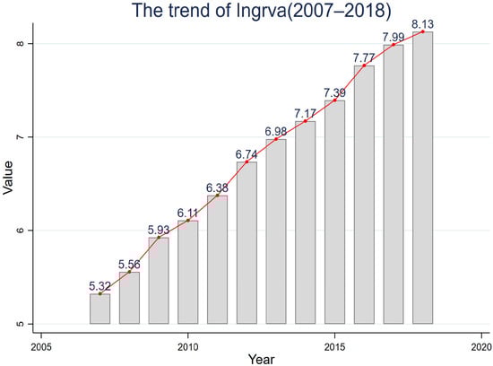 Figure 1 illustrates a steady upward trend in regional green innovation (Ingrva) over the sample period, increasing from approximately 5.32 in 2007 to 8.13 in 2018. This provides a descriptive foundation for the empirical analysis and implies that China’s focus on environmental protection and innovation has yielded observable progress over time.