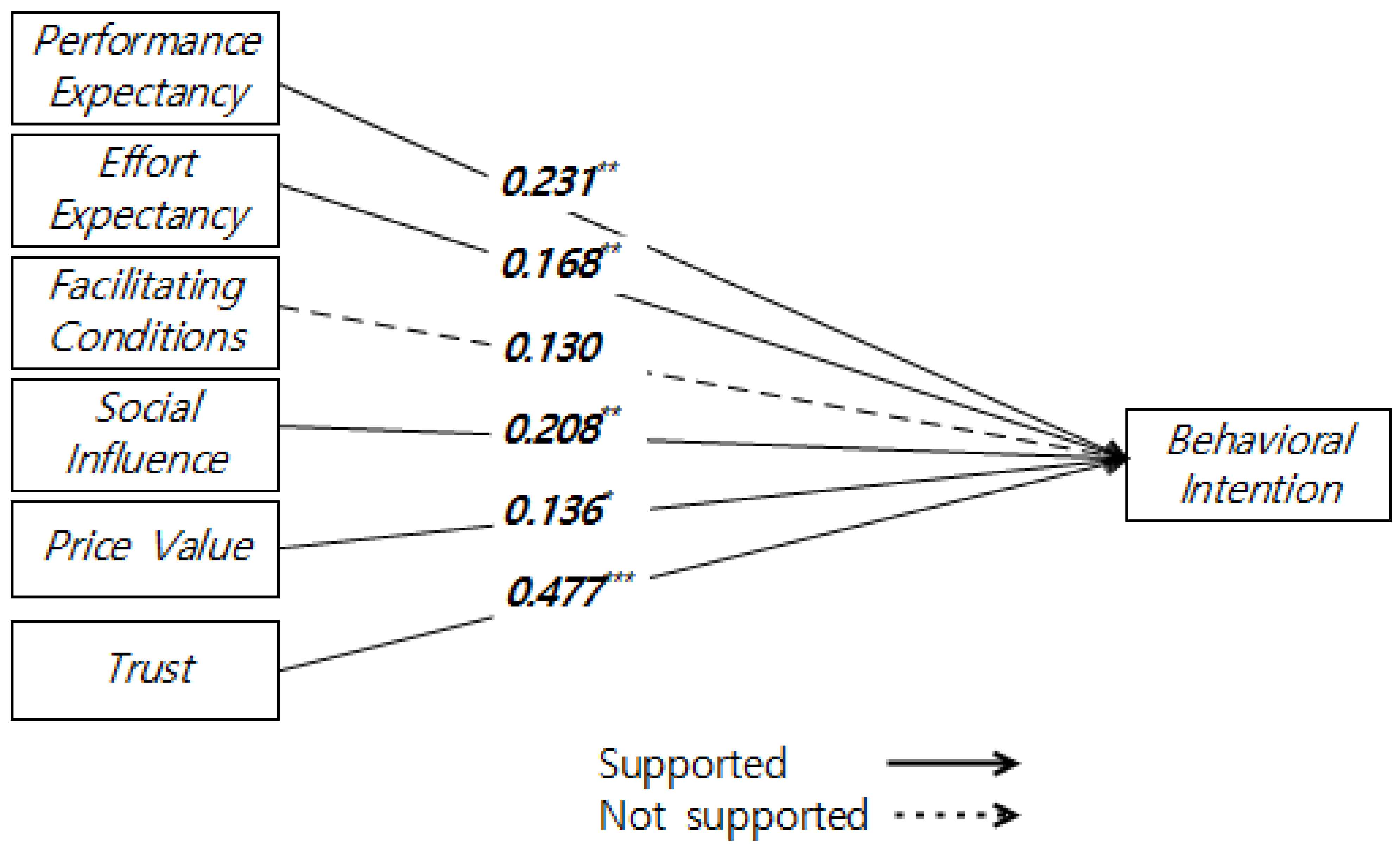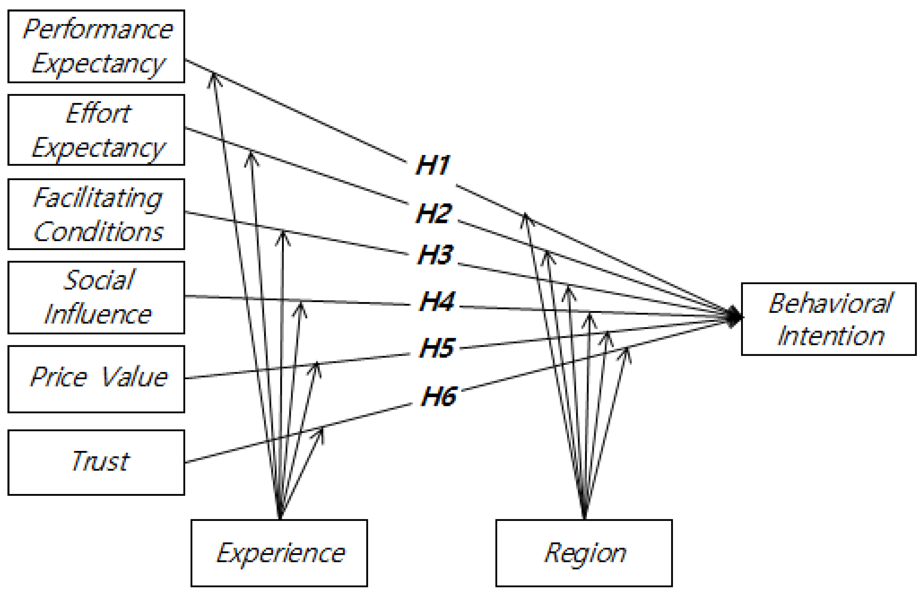 Table 7). In Jeju-do, price value and trust were found to have significant effects on EP acceptance intention. In Jeollanam-do, effort expectancy and social influence displayed significant effects on EP acceptance intention, confirming differences in acceptance intention by region (