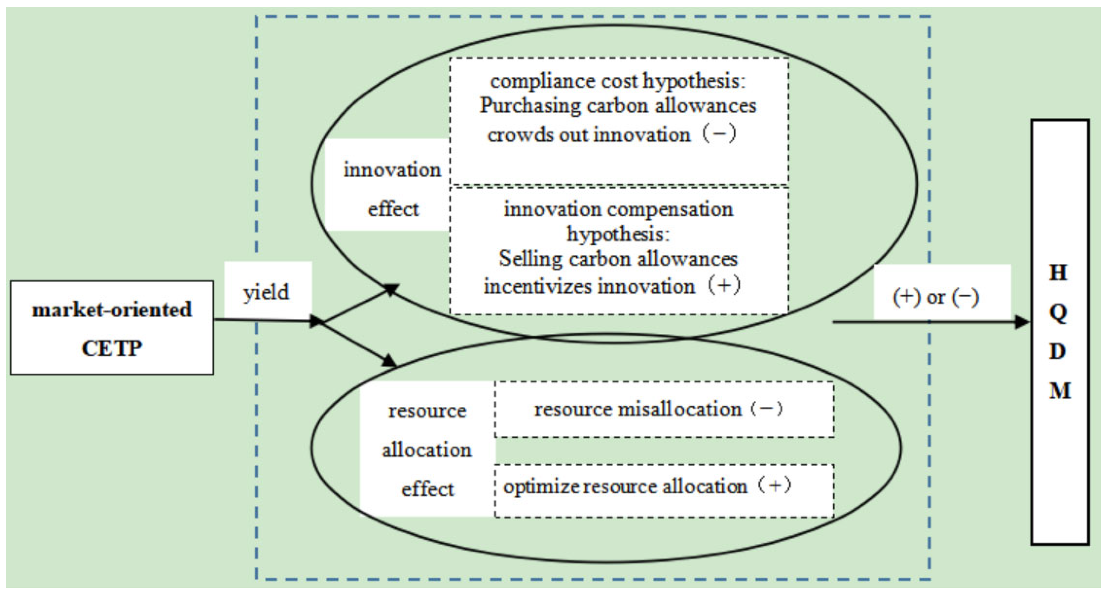 - Efforts should be made to accelerate the market-oriented transformation of carbon regulation. Given that the study findings of this paper indicate that the CETP significantly promotes the HQDM, it is necessary to make efforts to accelerate carbon regulation’s transformation from a purely “command-driven” model to a dual model with both “command-driven” and “market-oriented” characteristics, thereby enabling the market to fully exert its decisive role in carbon emission reduction, and lay a more solid institutional foundation for promoting sustainable development.