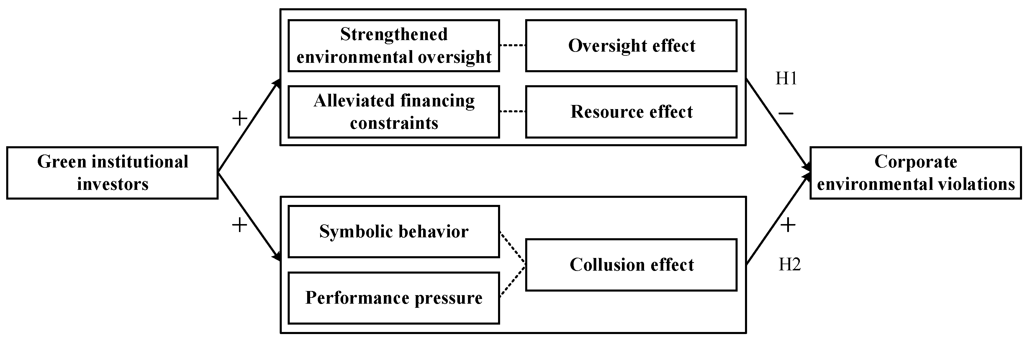 14], the role of investors has been relatively understudied. These conventional actors typically function through either supervisory and corrective mechanisms, as seen with governments, media, the public, and executives, or credit-linked incentives, in the case of financial institutions. Yet, dependence on a single type of mechanism has shown to be inadequate in effectively curbing environmental misconduct. By focusing on green institutional investors, which combine oversight with resource effects, this research not only enlarges the range of recognized governance actors, but also illustrates how collaborative interactions among diverse stakeholders constitute an effective response to corporate environmental misconduct.