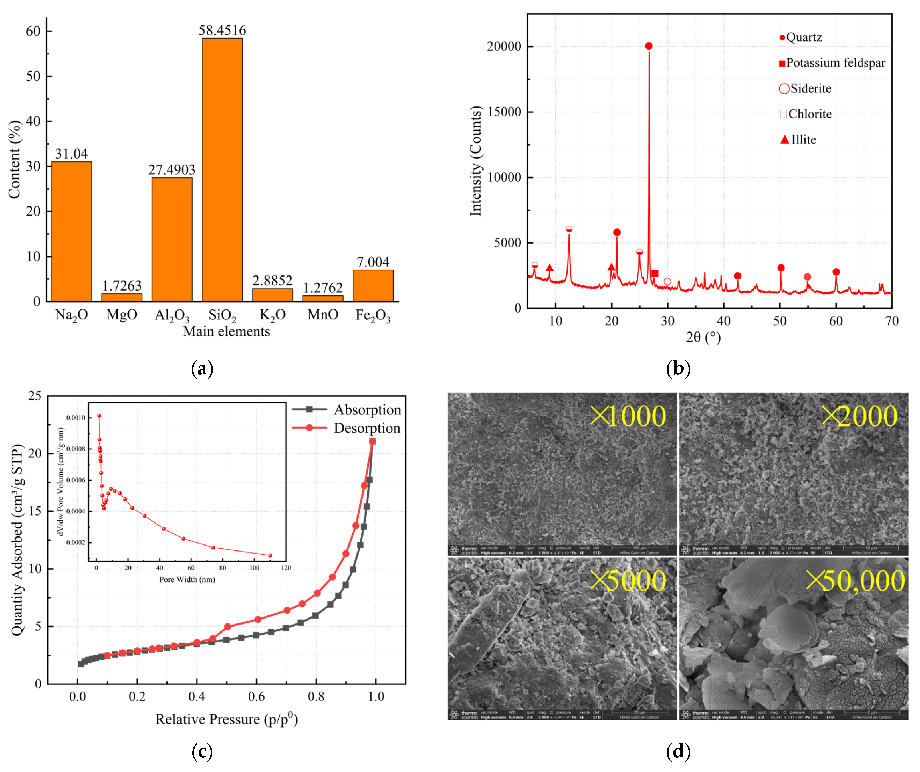 - Yao, S.; Feng, G.R.; Zhao, D.K.; Liu, A.F.; Du, J.; Wang, S.; Yao, X.; Hou, K. Research Progress of Clay Minerals in the Field of Coal Mine Water Treatment. Mater. Rep. 2025, 39, 71–80. Available online: https://link.cnki.net/urlid/50.1078.tb.20241206.0905.002 (accessed on 29 October 2025).