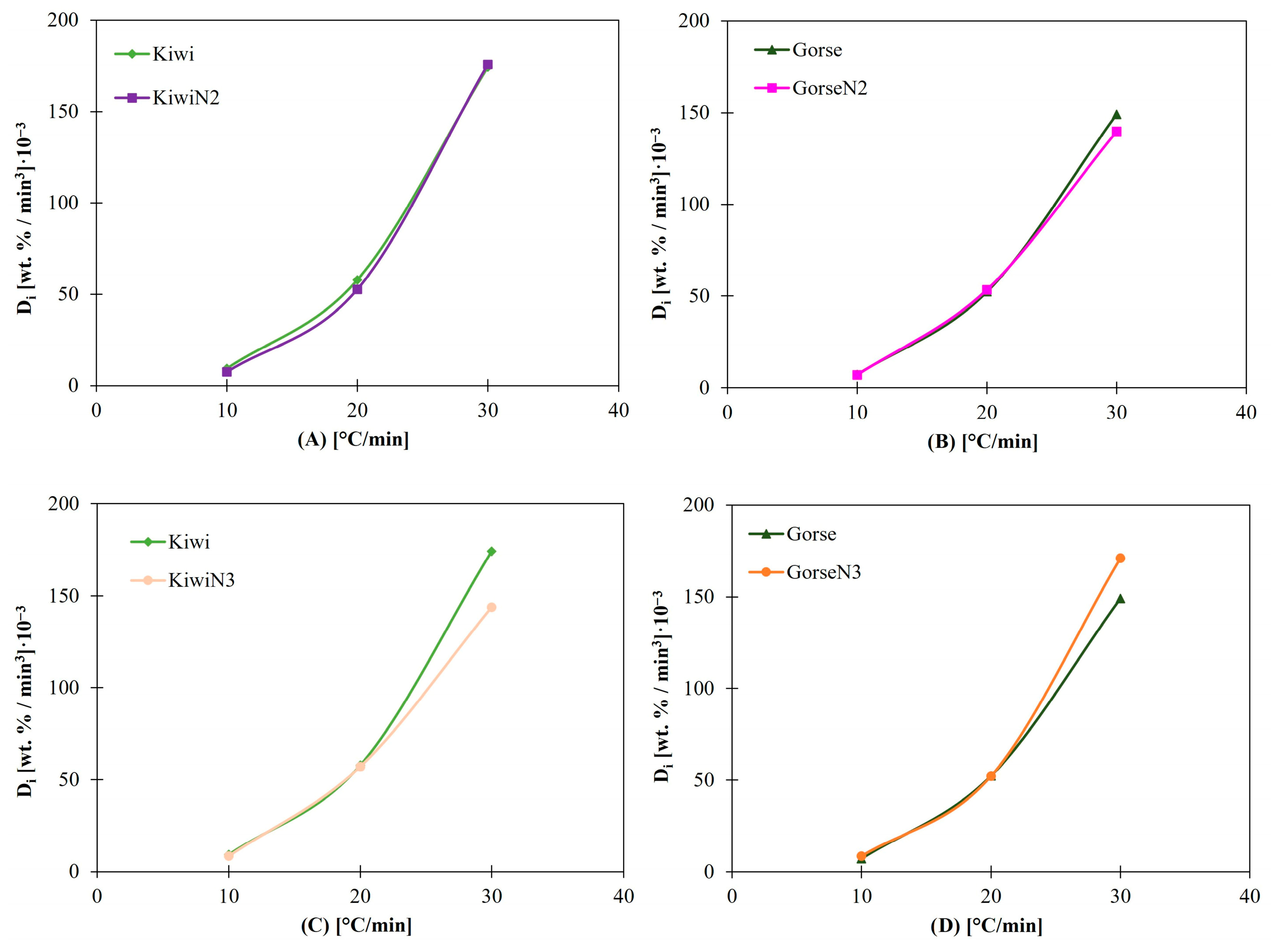 | Gorse N2 | Gorse pellet blended with 2 wt. % kaolinite |