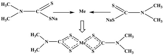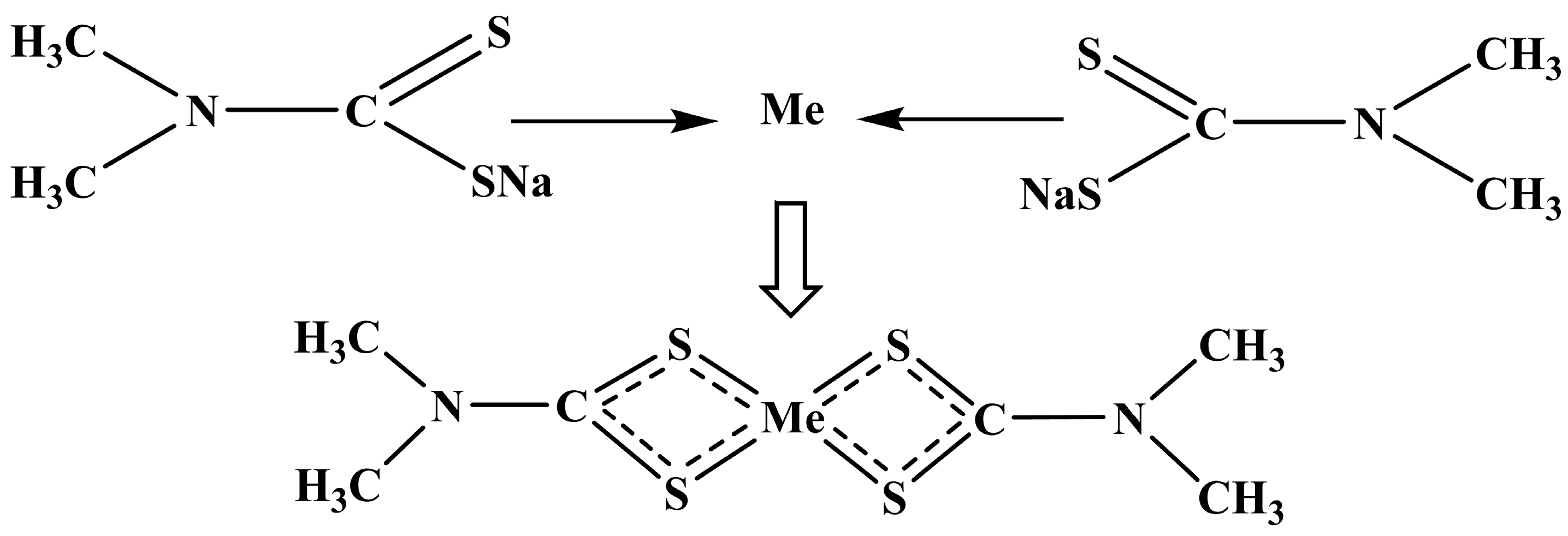 - Liu, W.G.; Duan, H.; Wei, D.Z.; Cui, B.Y.; Wang, X.Y. Stability of diethyl dithiocarbamate chelates with Cu(II), Zn(II) and Mn(II). J. Mol. Struct. 2019, 1184, 375–381. [Google Scholar] [CrossRef]