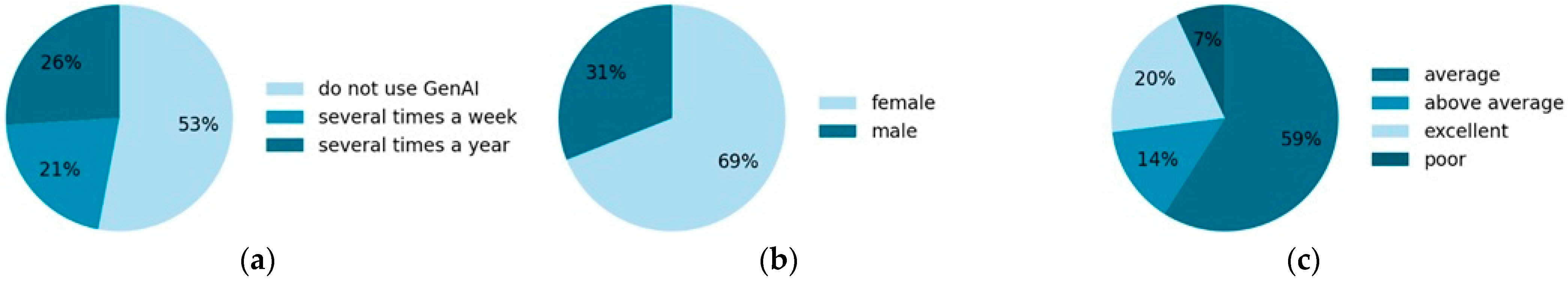 - Demographics and academic background–information about participants’ age, gender, academic level, and field of study;