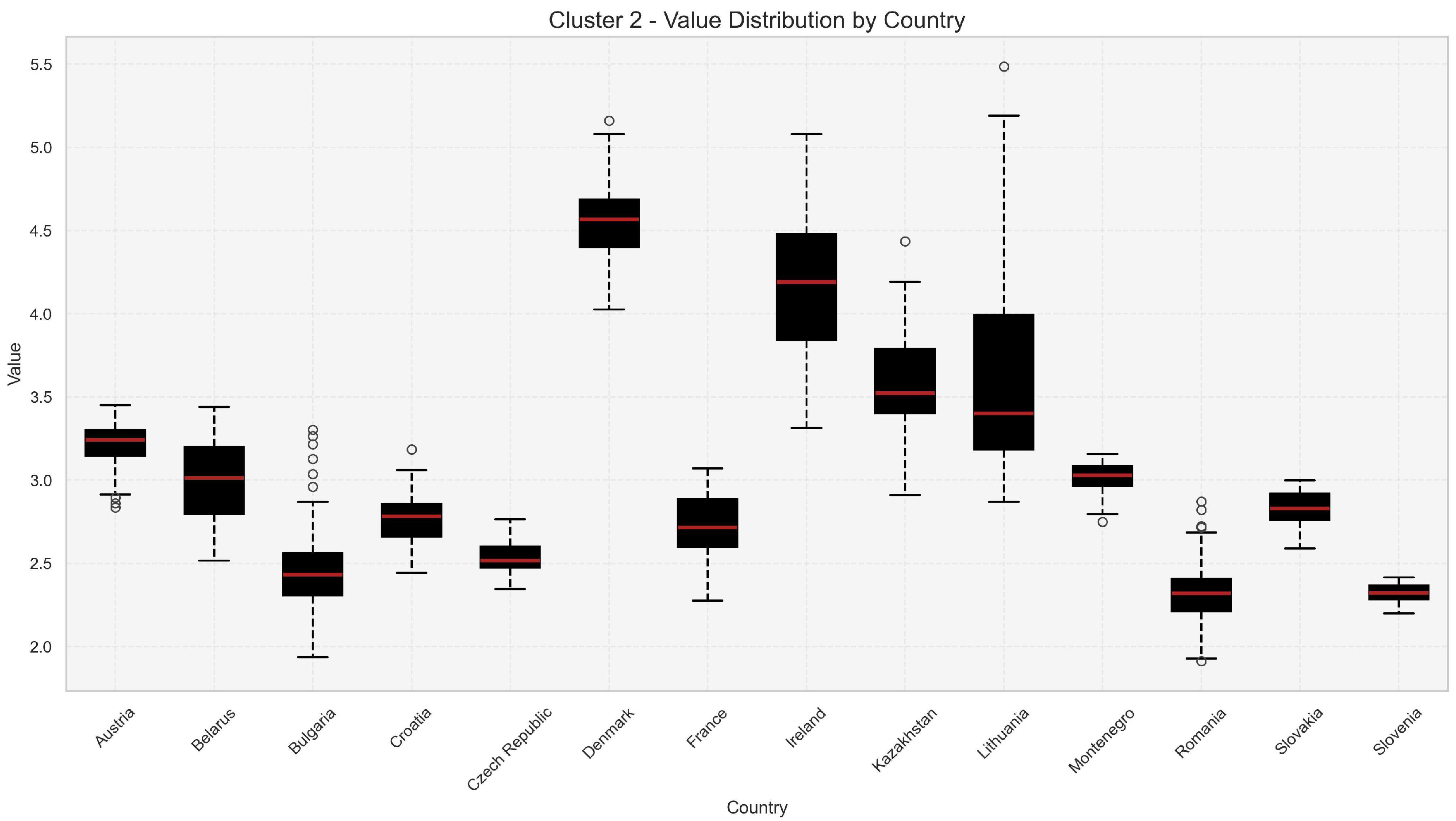 Figure 14. Distribution of biocapacity per capita values for individual countries within Cluster 2 (Medium-Growing). The visualization shows the moderate yet positively evolving biocapacity profile of these countries, supporting the interpretation of this cluster as being in a dynamic phase of development.