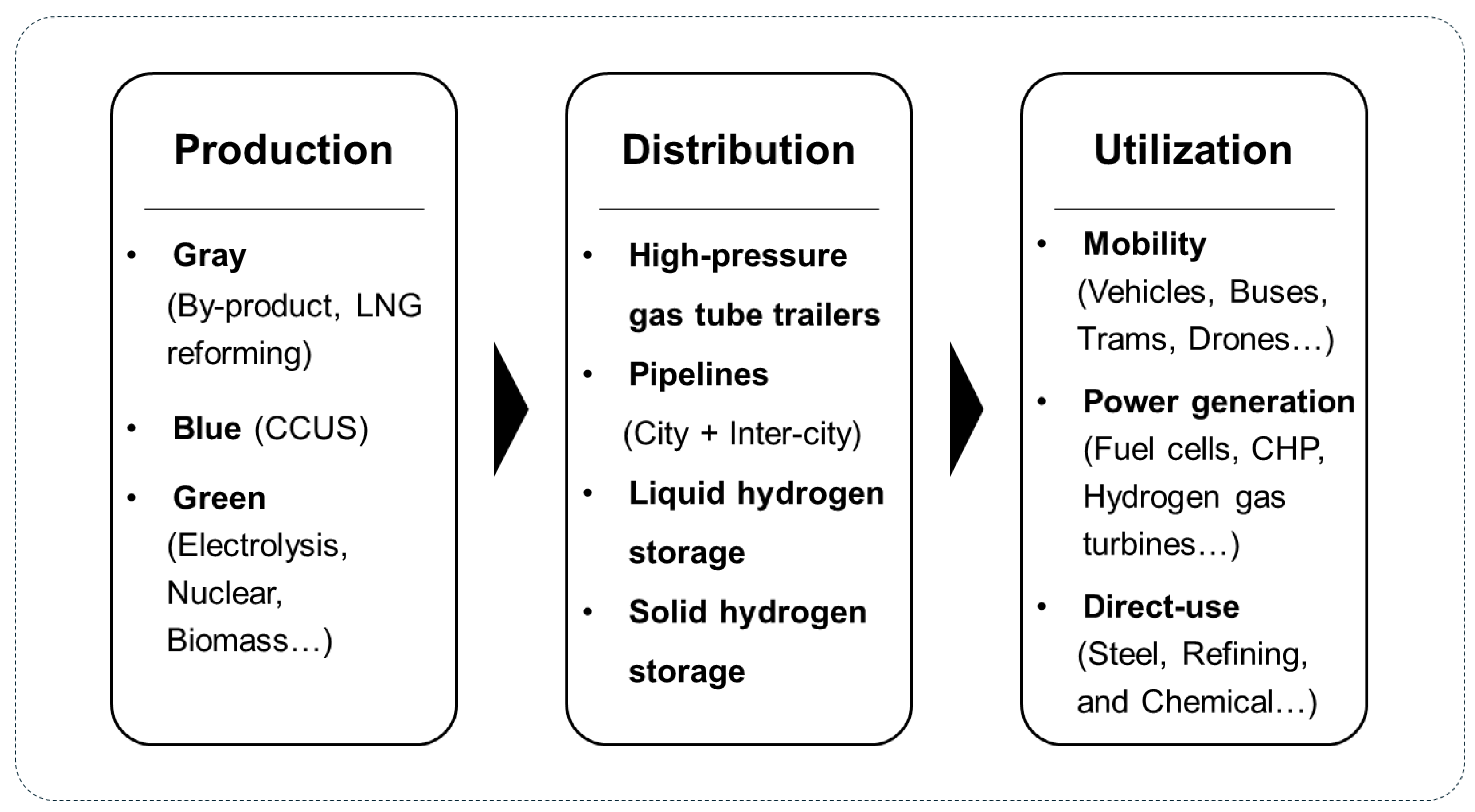 - The analysis was limited to mobility and power applications. Broader assessments are needed to explore hydrogen use in residential and commercial energy systems, hydrogen-based feedstocks for chemical industries, and emerging sectors such as maritime and aviation transport.
