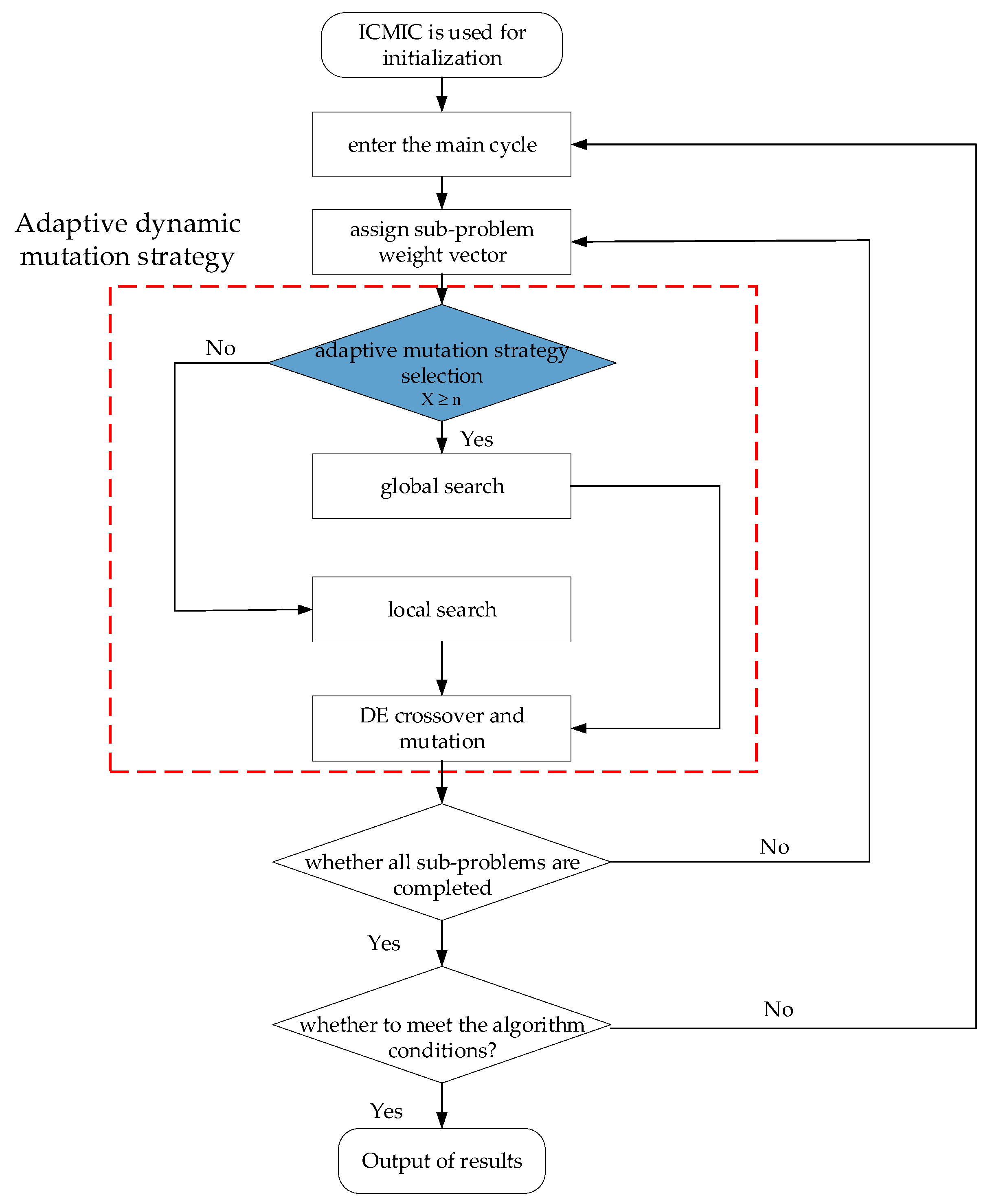 | Algorithm 1. Adaptive dynamic mutation strategy |