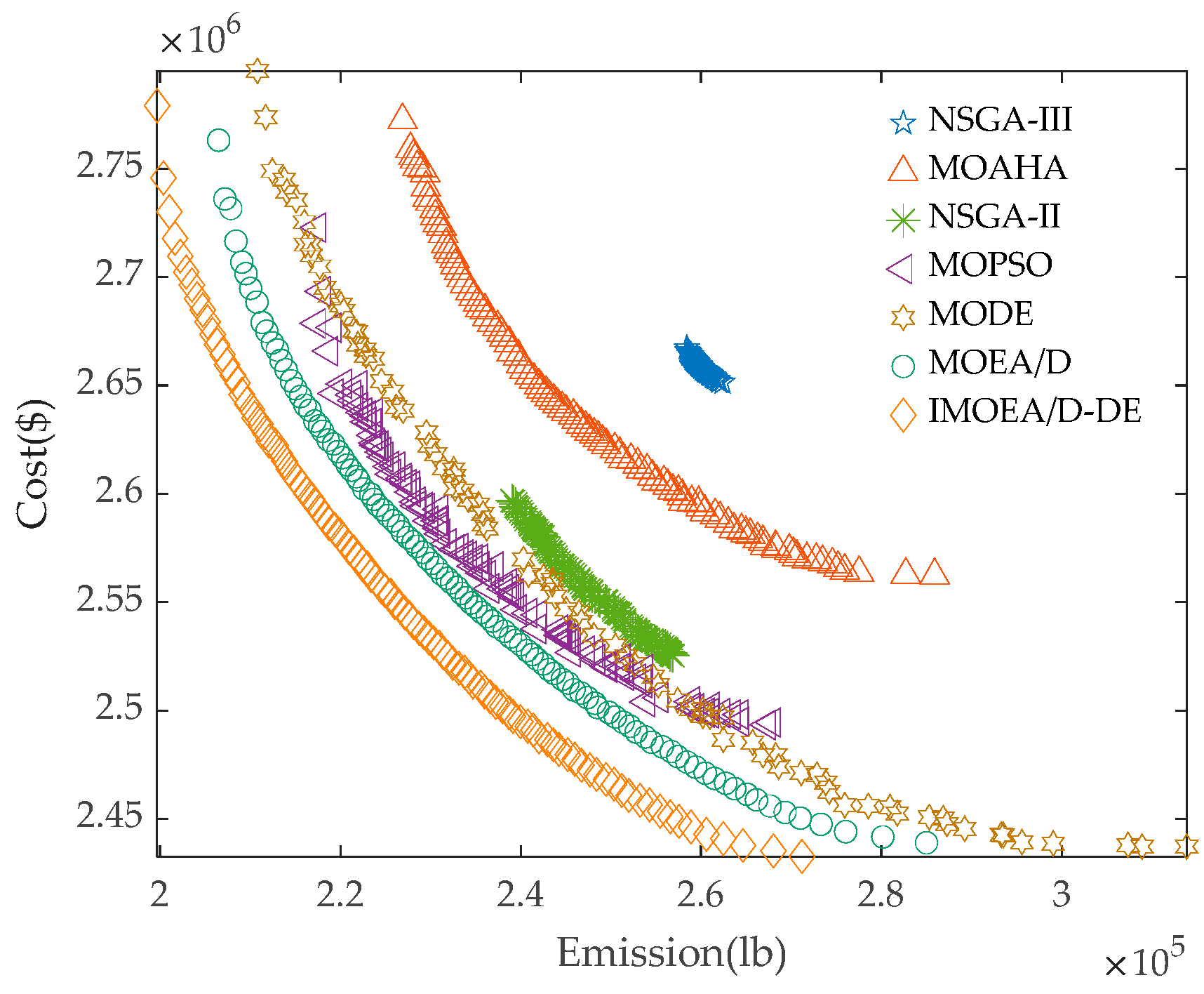 | Best emission | 4.6673 × 106 | 3.5259 × 106 | |