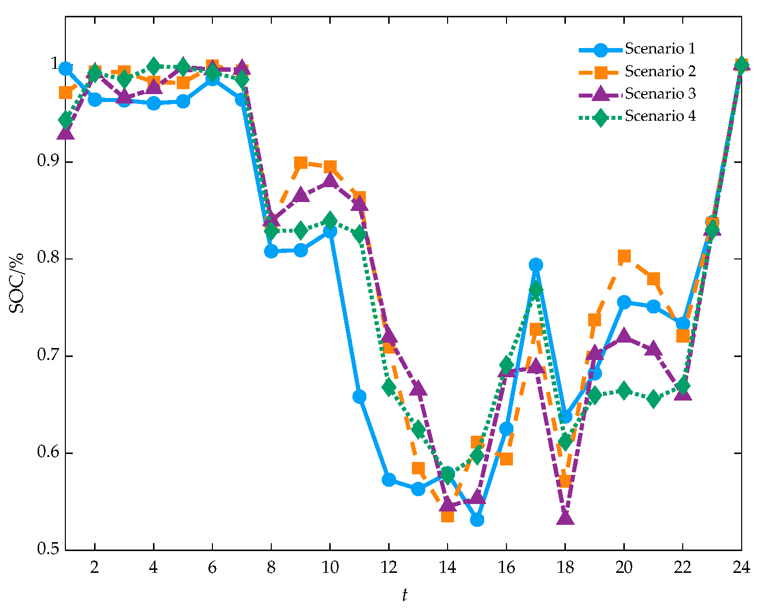 - Wang, N.; Li, B.; Duan, Y.; Jia, S. A multi-energy dispatching strategy for orderly charging and discharging of electric vehicles based on multi-objective particle swarm optimization. Sustain. Energy Technol. Assess. 2021, 44, 101037. [Google Scholar]