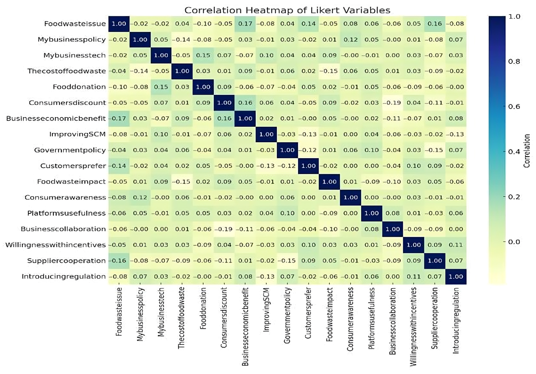 - Businesscollaboration/Suppliercooperation: Perceptions of collaboration with partners and suppliers to reduce waste.