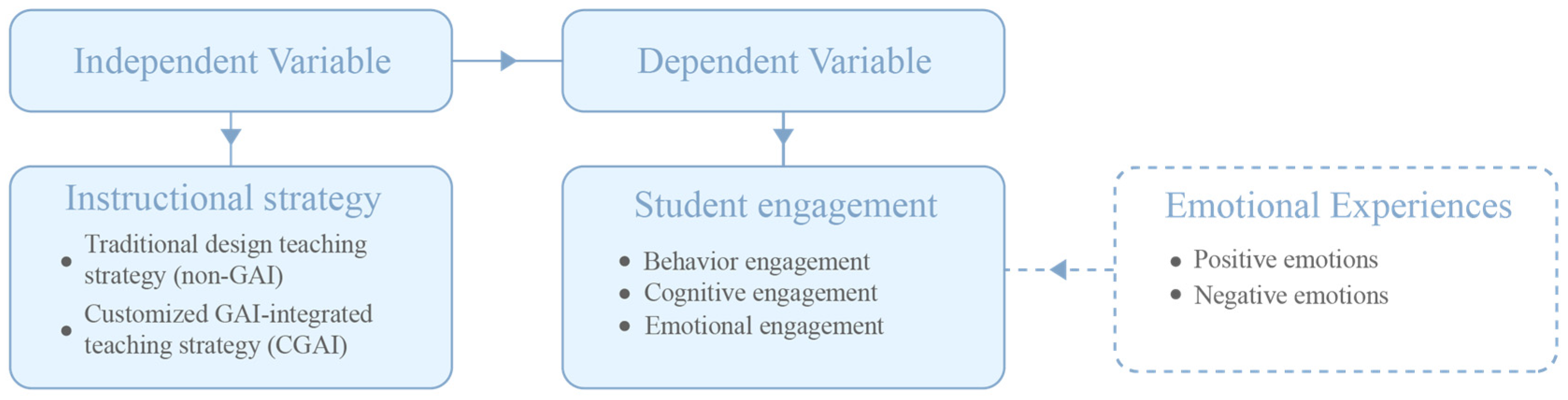 APA StyleLi, H., Sun, L., & Kim, S. (2025). Effects of Customized Generative AI on Student Engagement and Emotions in Visual Communication Design Education: Implications for Sustainable Integration. Sustainability, 17(22), 9963. https://doi.org/10.3390/su17229963