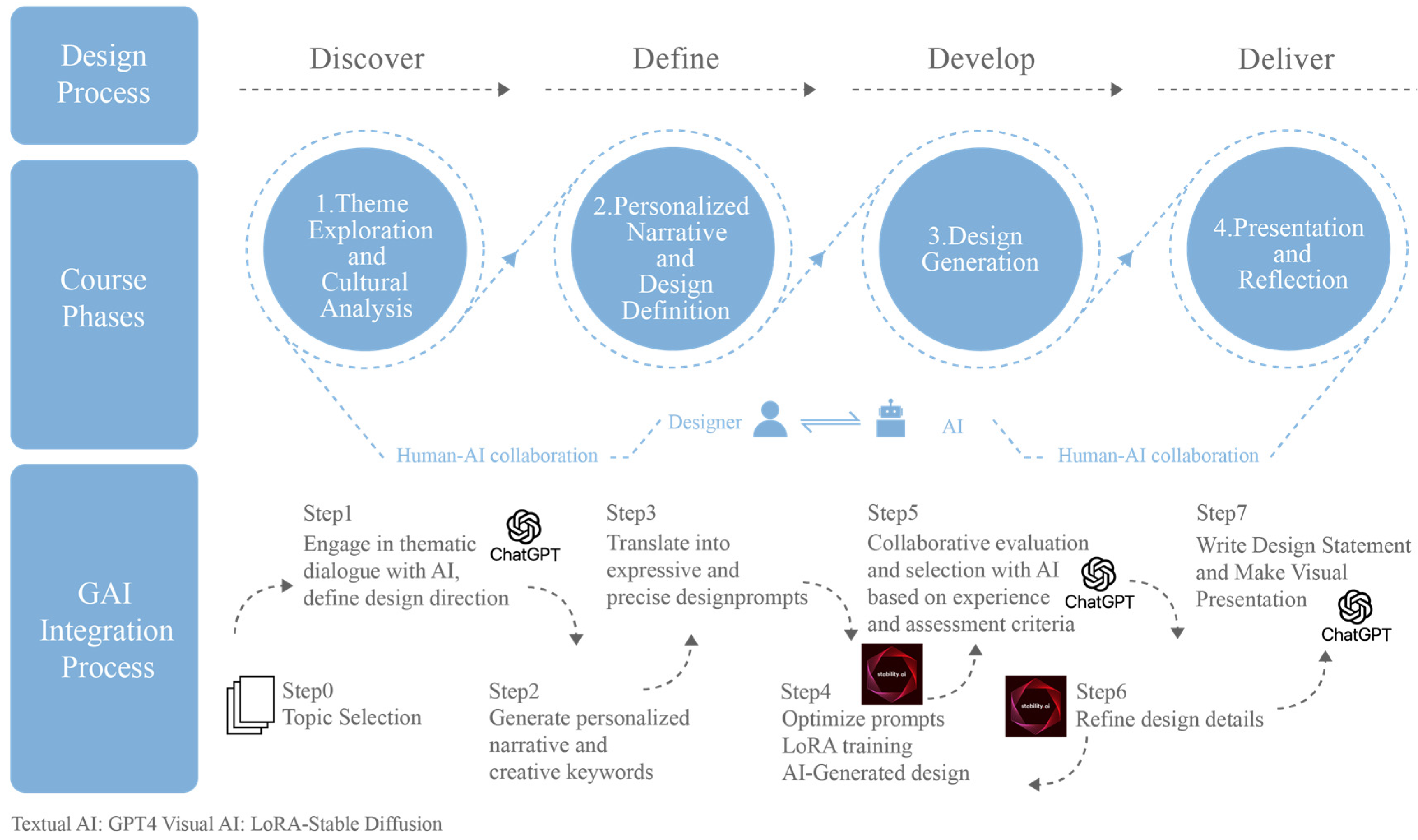 - Li, J.; Liu, S.; Zheng, J.; He, F. Enhancing visual communication design education: Integrating AI in collaborative teaching strategies. J. Comput. Methods Sci. Eng. 2024, 24, 2469–2483. [Google Scholar] [CrossRef]