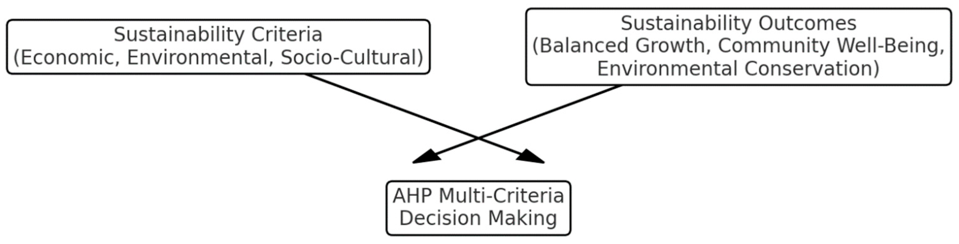 - Saputra, P.E.D.; Srinadi, I.G.A.M.; Susilawati, M.; Kencana, I.P.E.N.; Octavanny, M.A.D.; Gandhiadi, G.K. Wakatobi Development Priorities as A Sustainable Tourism Destination Using the Analytical Hierarchy Process Method. Int. J. Educ. Res. 2024, 1, 51–66. [Google Scholar] [CrossRef]