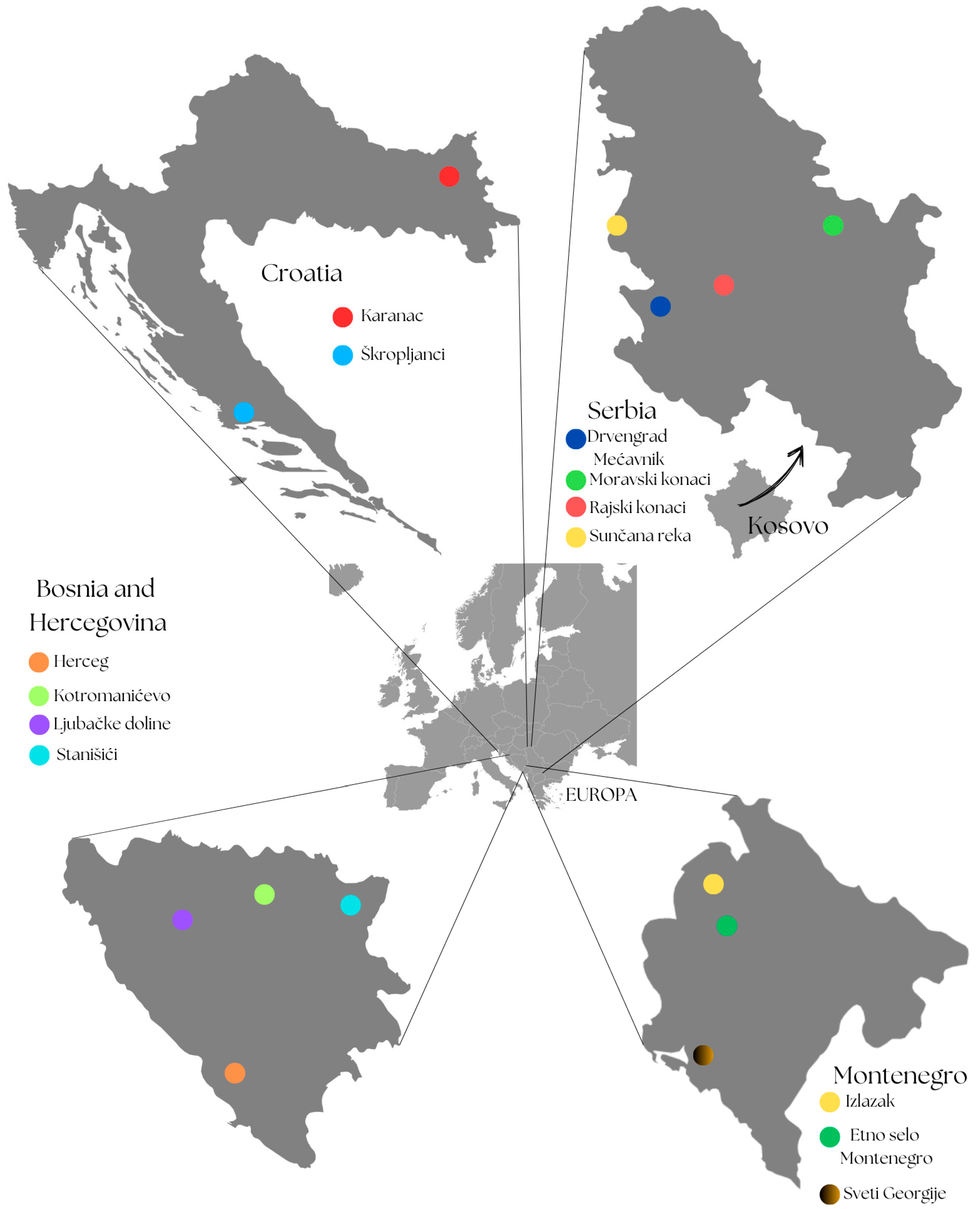 - Etno Selo Herceg. 2025. Available online: https://etno-herceg.com/en/home/ (accessed on 13 May 2025).