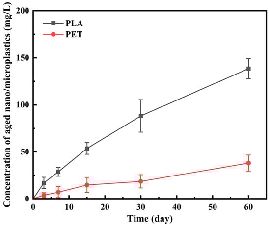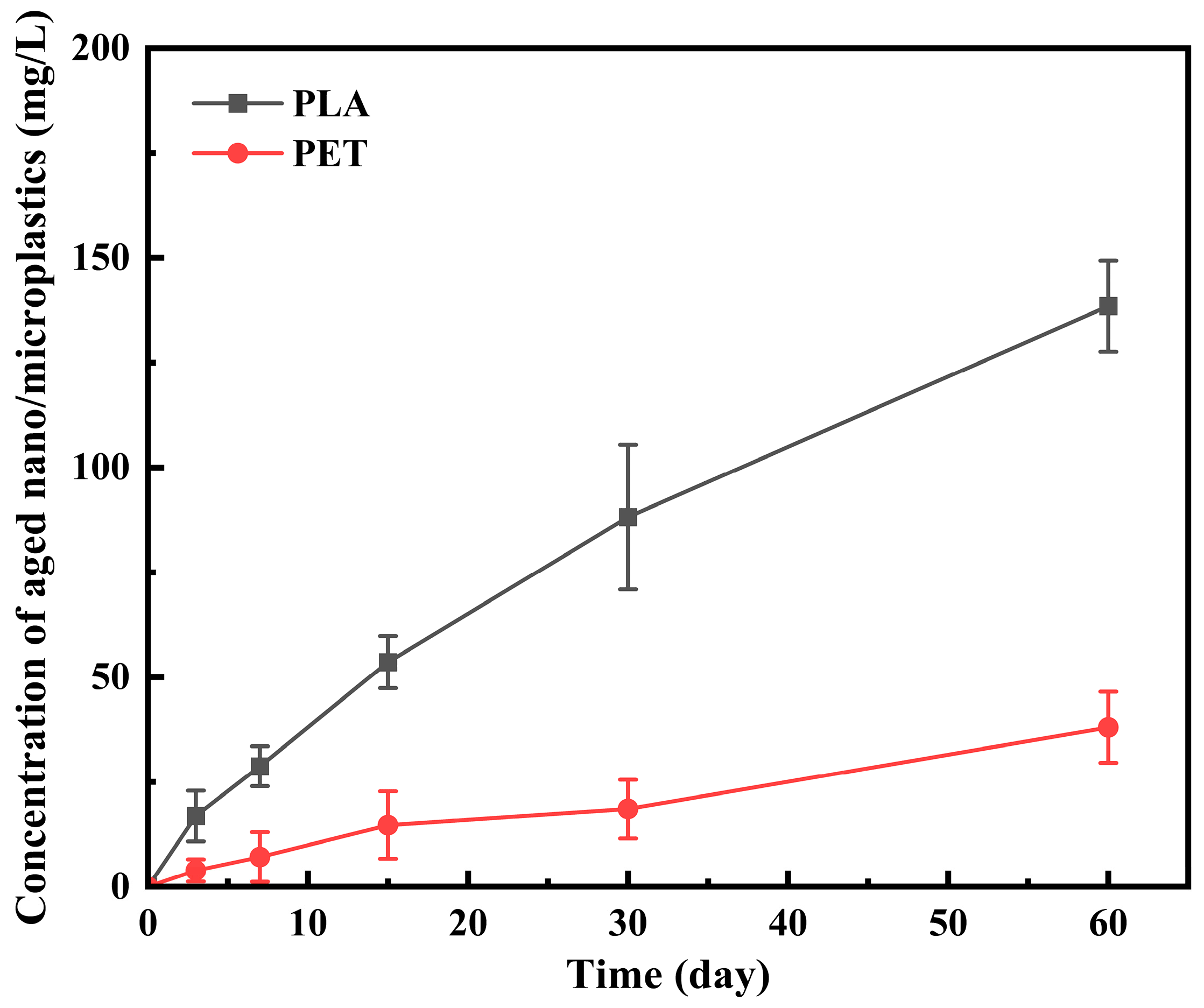 The amounts of aged nano/microplastics released from PLA and PET microplastics during the 60 days UV aging.