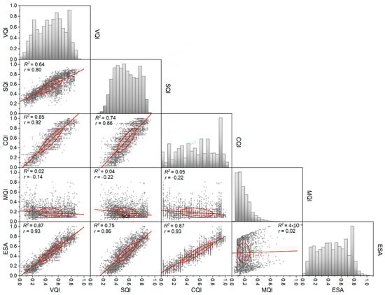 The indices SQI, CQI, and VQI represent the natural-environmental conditions of the region, while MQI reflects the socio-economic component, characterizing the pressure of anthropogenic activity on the environment.