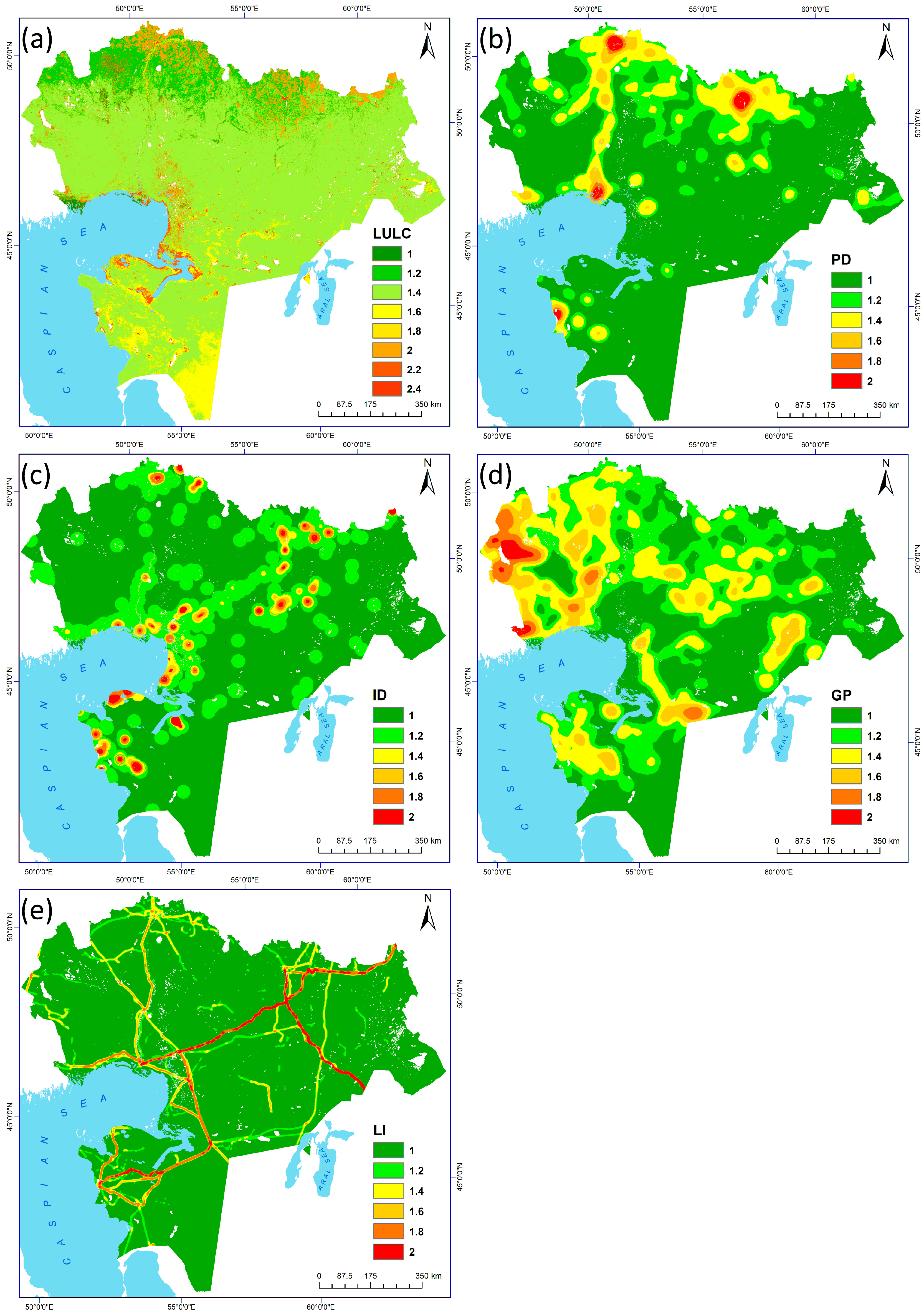 | Population density (PD) | 0.001–0.21 | 0.21–0.37 | 0.37–0.53 | 0.53–0.68 | 0.68–0.84 | 0.84–1.00 |