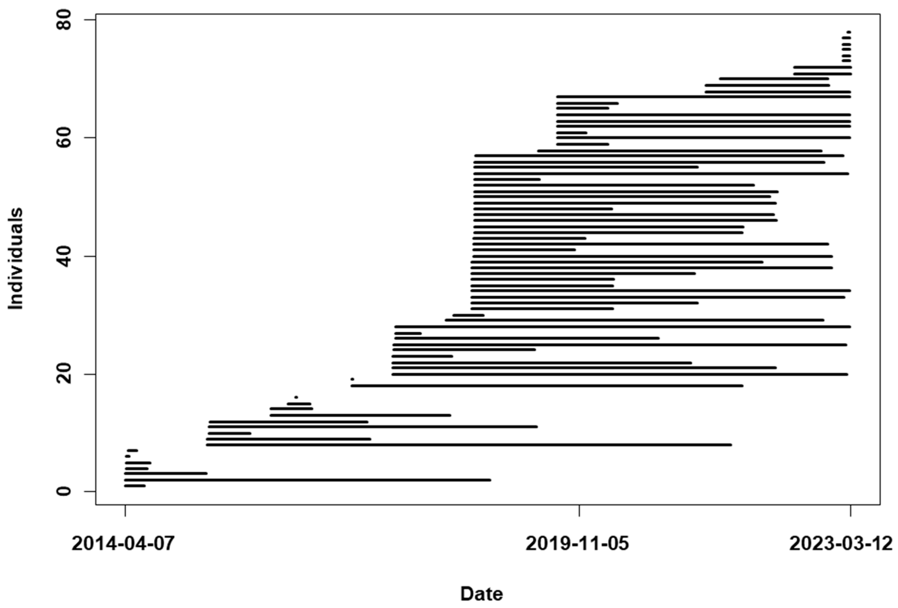 | Year | Departure Dates (Mean Values of Julian Day) | Standard Deviation of Departure Dates | Number of Individuals |
