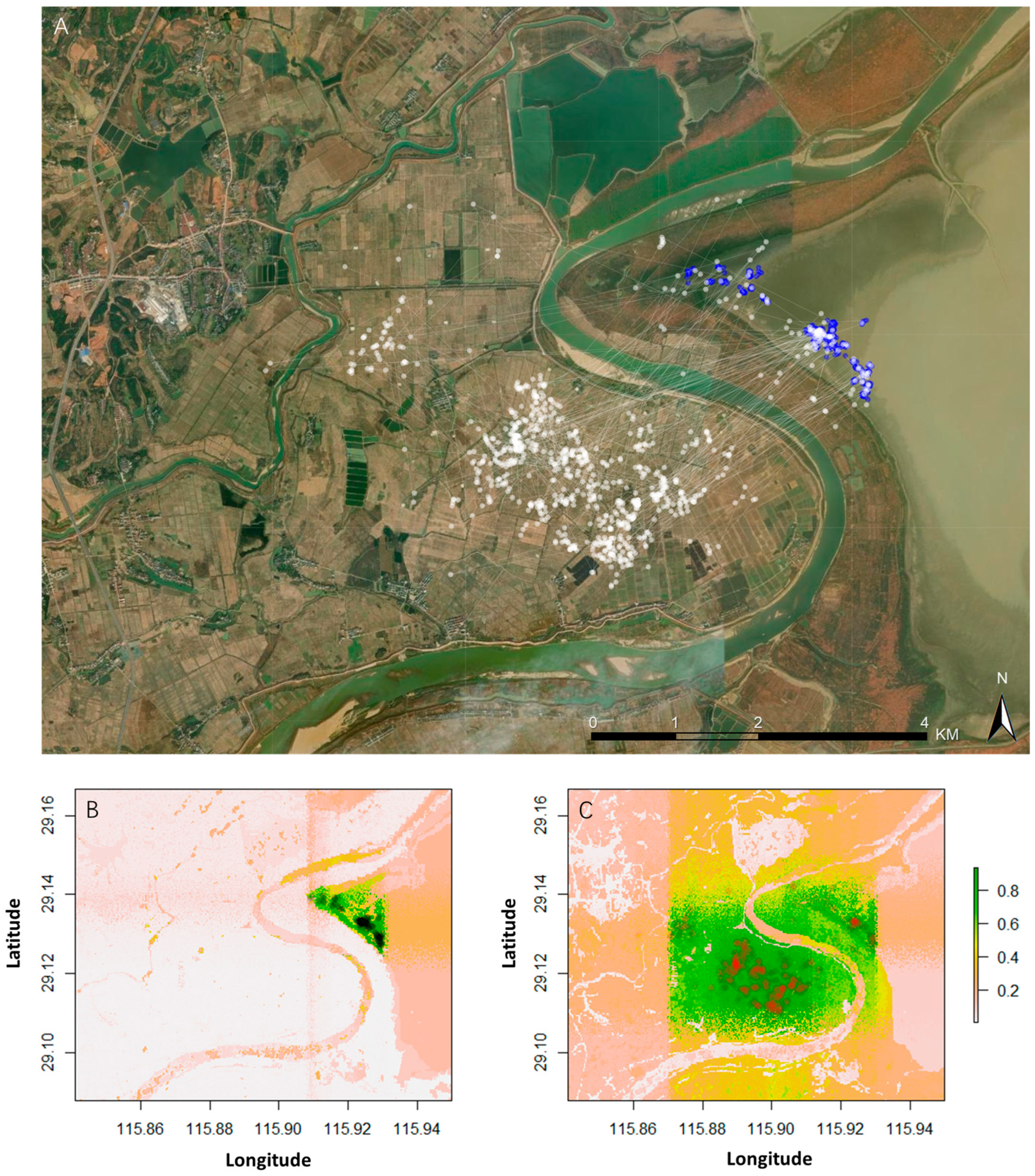 - Liu, X.; Yuan, L.; Li, Z.; Huang, Y.; Li, Y. Mapping Habitat Suitability of Migratory Birds During Extreme Drought of Large Lake Wetlands: Insights from Crowdsourced Geographic Data. Land 2025, 14, 1236. [Google Scholar] [CrossRef]