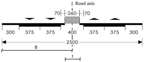 Category A Motorway—basic solution with 2 + 2 lanes (data in centimeters).