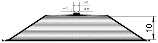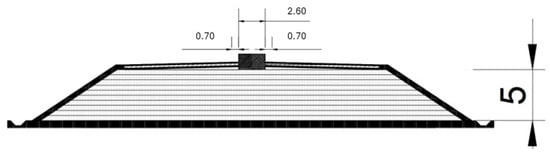Figure 10, Figure 11 and Figure 12 show the sections of the different types of viaducts considered with their relative measurements. Table 7 and Table 8 show the data relating to the quantities of materials used to build the single viaduct and its characteristics, respectively.