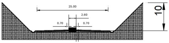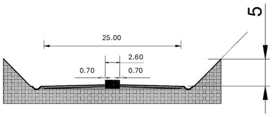 The sections used in the LCA study are shown in Figure 4, Figure 5 and Figure 6, with the input data relevant for modeling in Table 3, Table 4 and Table 5: ground level section; high, medium, and low embankment sections; high, medium, and low cutting sections; high, medium, and low viaducts; natural–traditional tunnels.