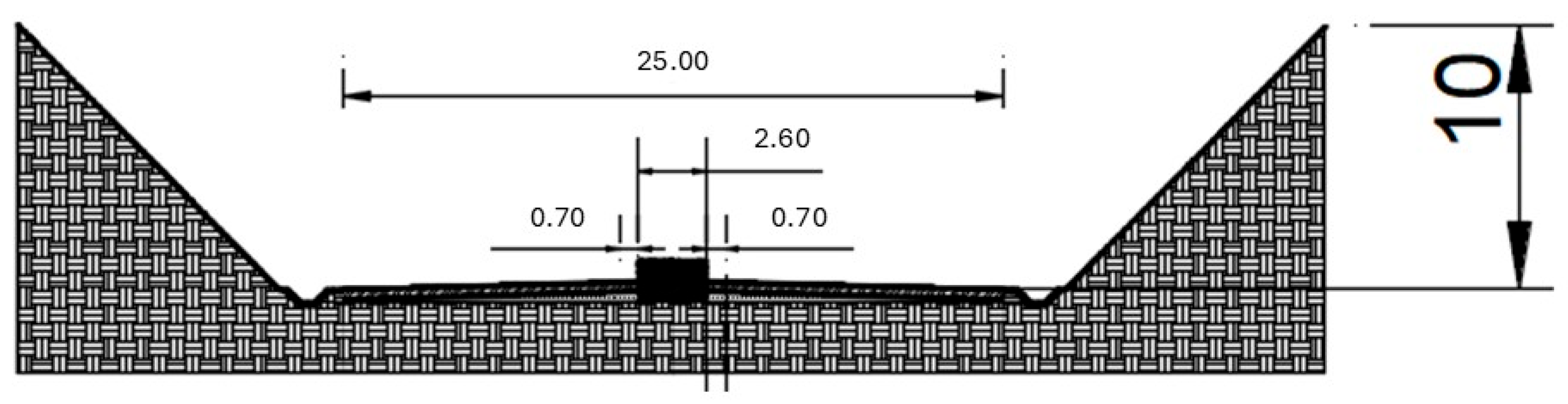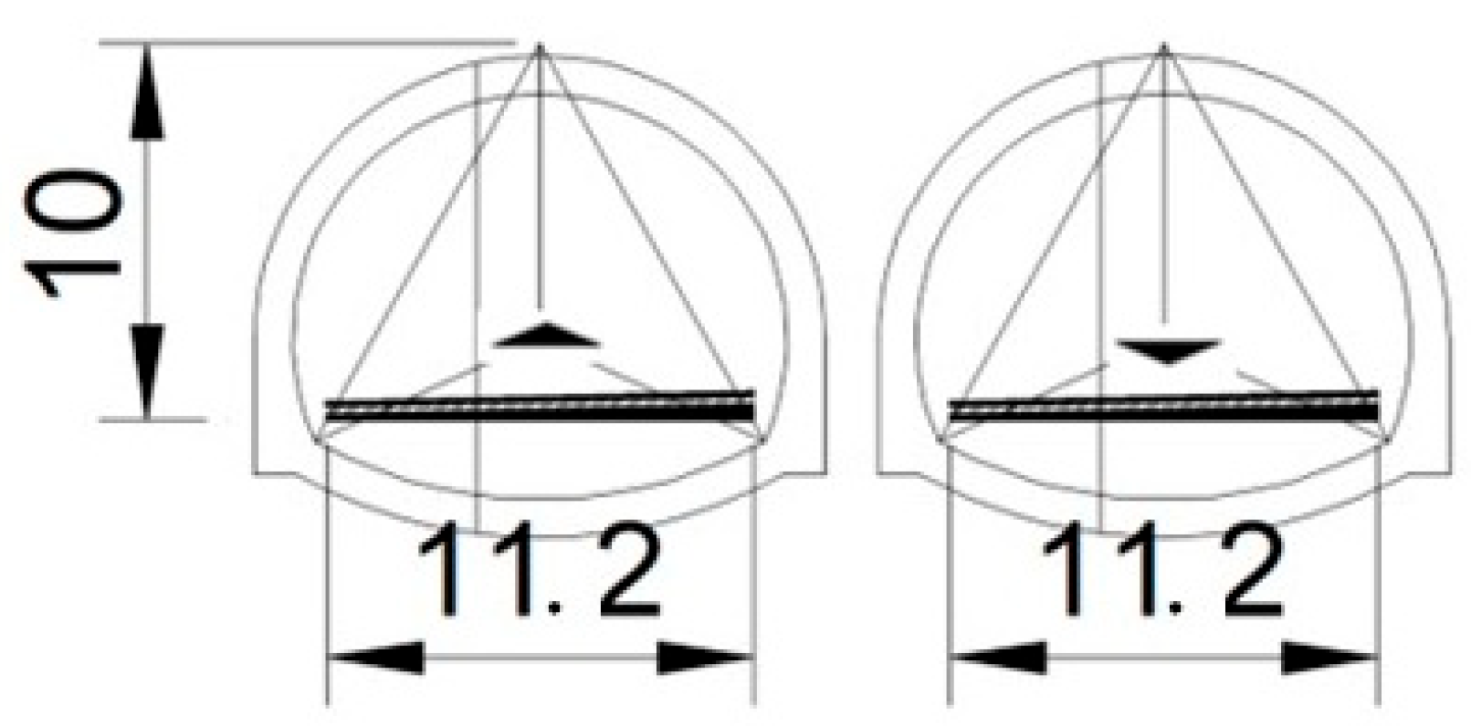 Modeled section of a natural tunnel in traditional excavation for the two directions—typical section of the intrados (m).