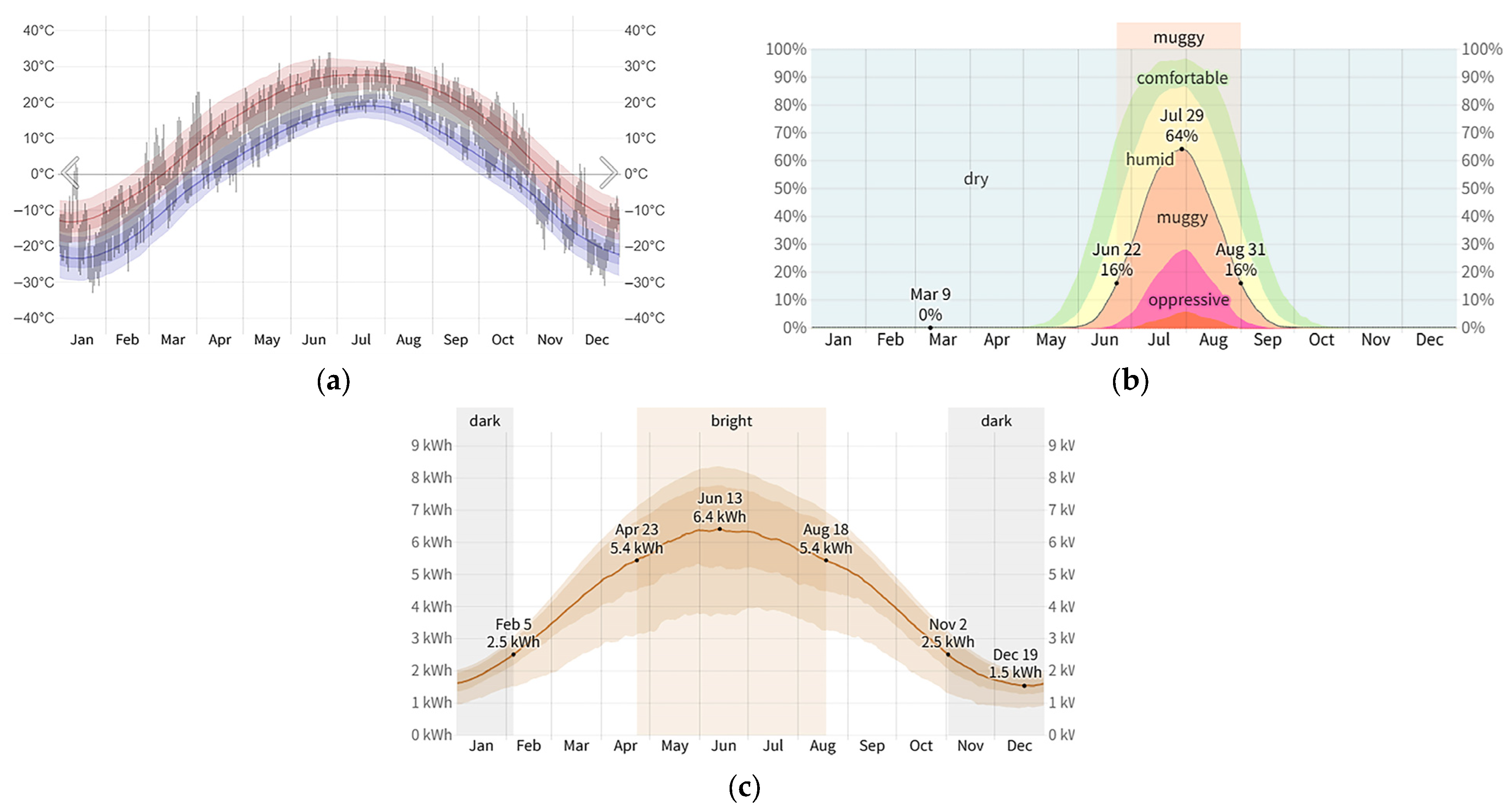 - Du, L.; Wang, H.; Bian, C.; Chen, X. Impact of block form on building energy consumption, urban microclimate and solar potential: A case study of Wuhan, China. Energy Build. 2025, 328, 115224. [Google Scholar] [CrossRef]