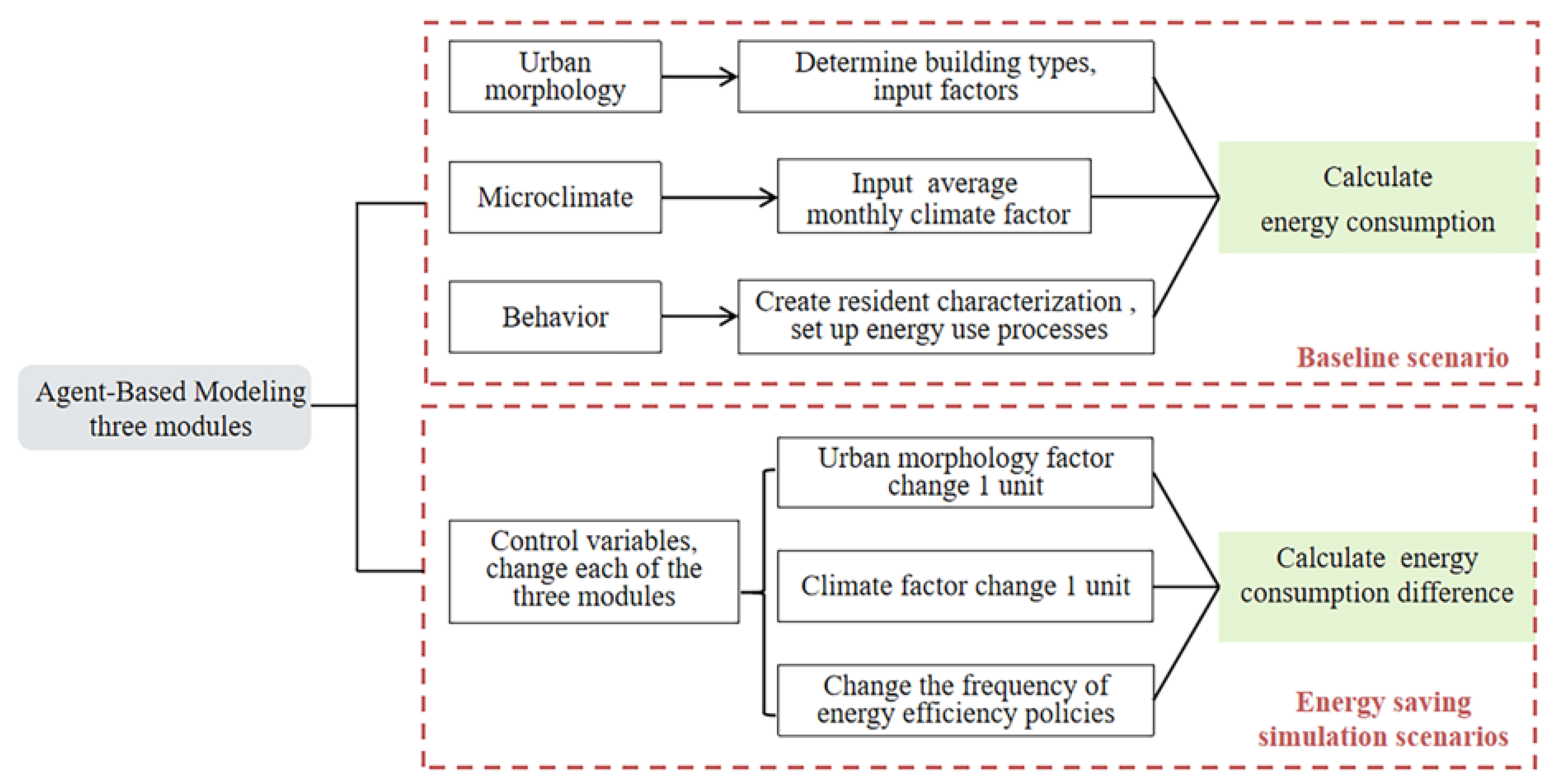 APA StyleCui, P., Ji, R., Lu, J., Guo, Z., & Zheng, Y. (2025). Impacts of Urban Morphology, Climate, and Occupant Behavior on Building Energy Consumption in a Cold Region: An Agent-Based Modeling Study of Energy-Saving Strategies. Sustainability, 17(23), 10447. https://doi.org/10.3390/su172310447