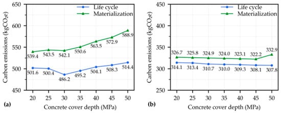 - A comparison of optimization results between the reliability index-based method and typical partial coefficient design method indicated that different strategies were required for life cycle sustainable design, considering structural deterioration and uncertainties. While the trends in optimized carbon emissions by varying material strengths were generally consistent across both methods, the optimized concrete cover depth differed. A thicker cover was preferred to mitigate carbon emissions in life cycle design.