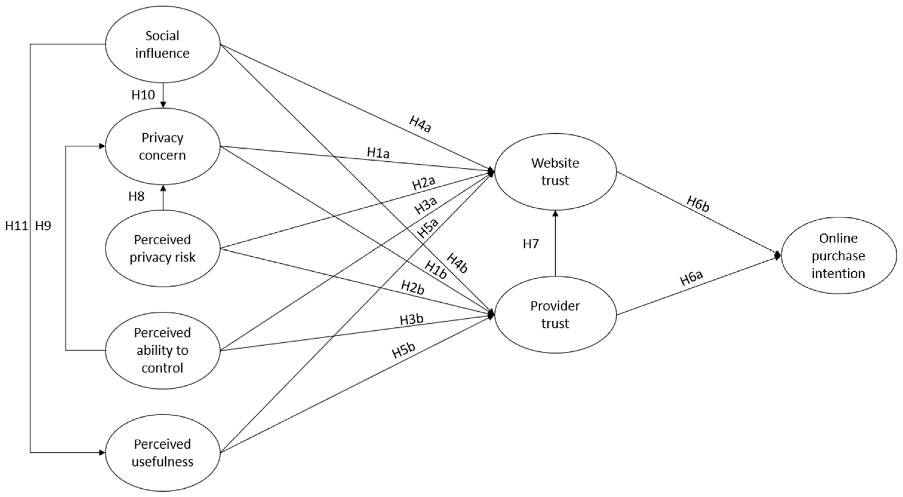 Furthermore, perceived control can be understood as the perceived ability of users to decide what personal information is used or not [50]. People have a natural desire to control their privacy and avoid losing control of their personal information [51]. Therefore, consumers who have control over the personal information they share will trust service providers more [52]. We therefore propose that greater consumer control over the personal information they share will lead to greater trust in online companies and service providers, as consumers will know at all times exactly what data is being offered and shared with those companies. Thus, it is established that