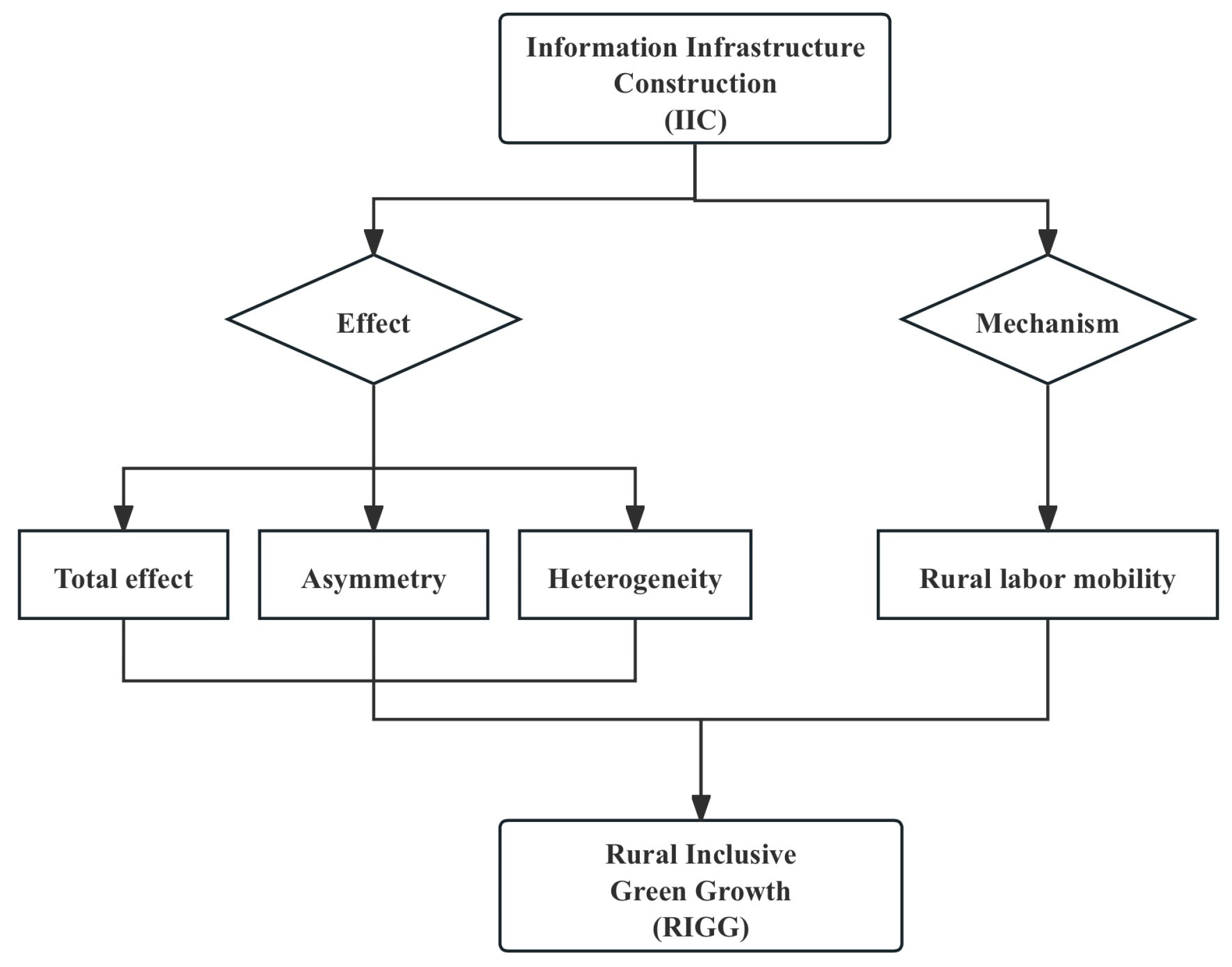 Therefore, this study contributes to the literature in the following ways: (1) by explicitly focusing the investigative lens on the rural context; (2) by providing robust empirical evidence on the impact of IIC on RIGG using comprehensive provincial-level rural panel data; and (3) by uniquely identifying and empirically testing rural labor mobility as a critical transmission mechanism, thereby offering deeper insights into the “how” behind this relationship.