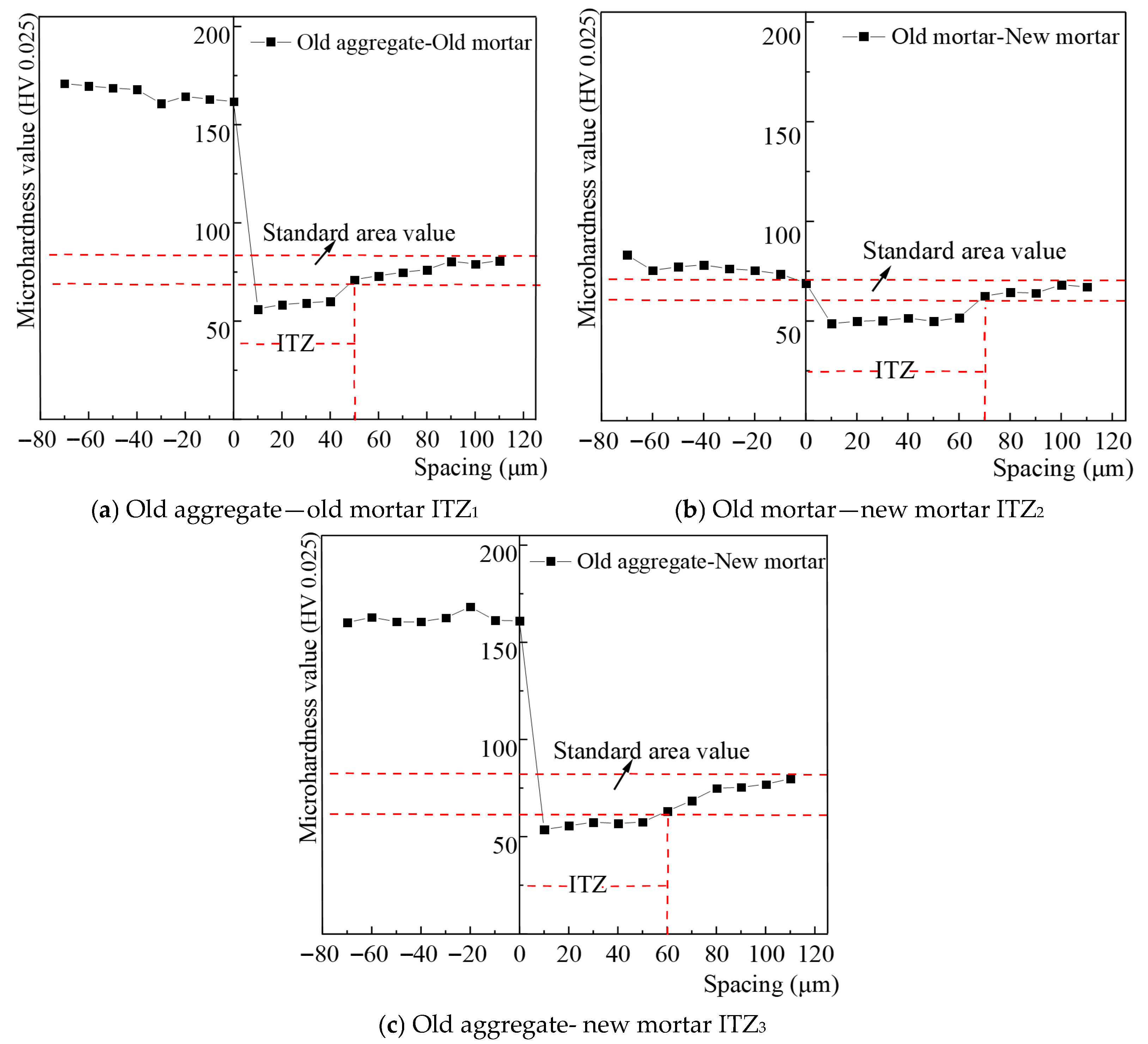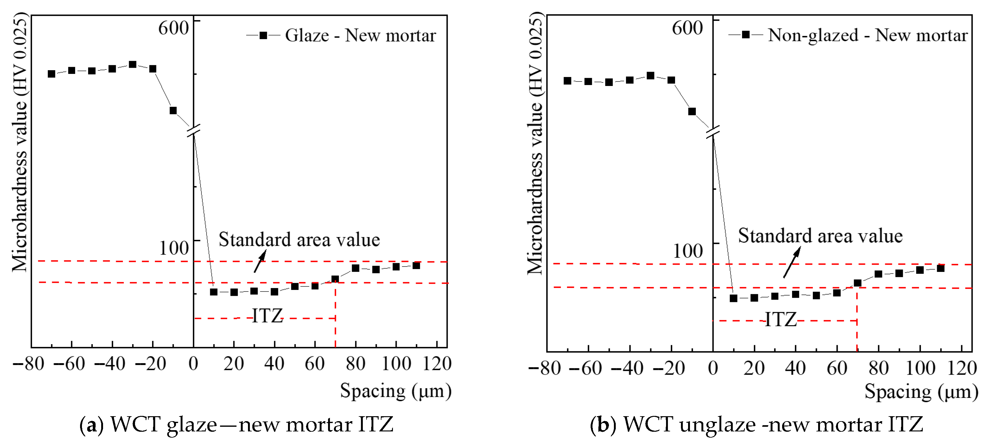 3.4.2. ITZ Microhardness in WCT Recycled Aggregate Concrete