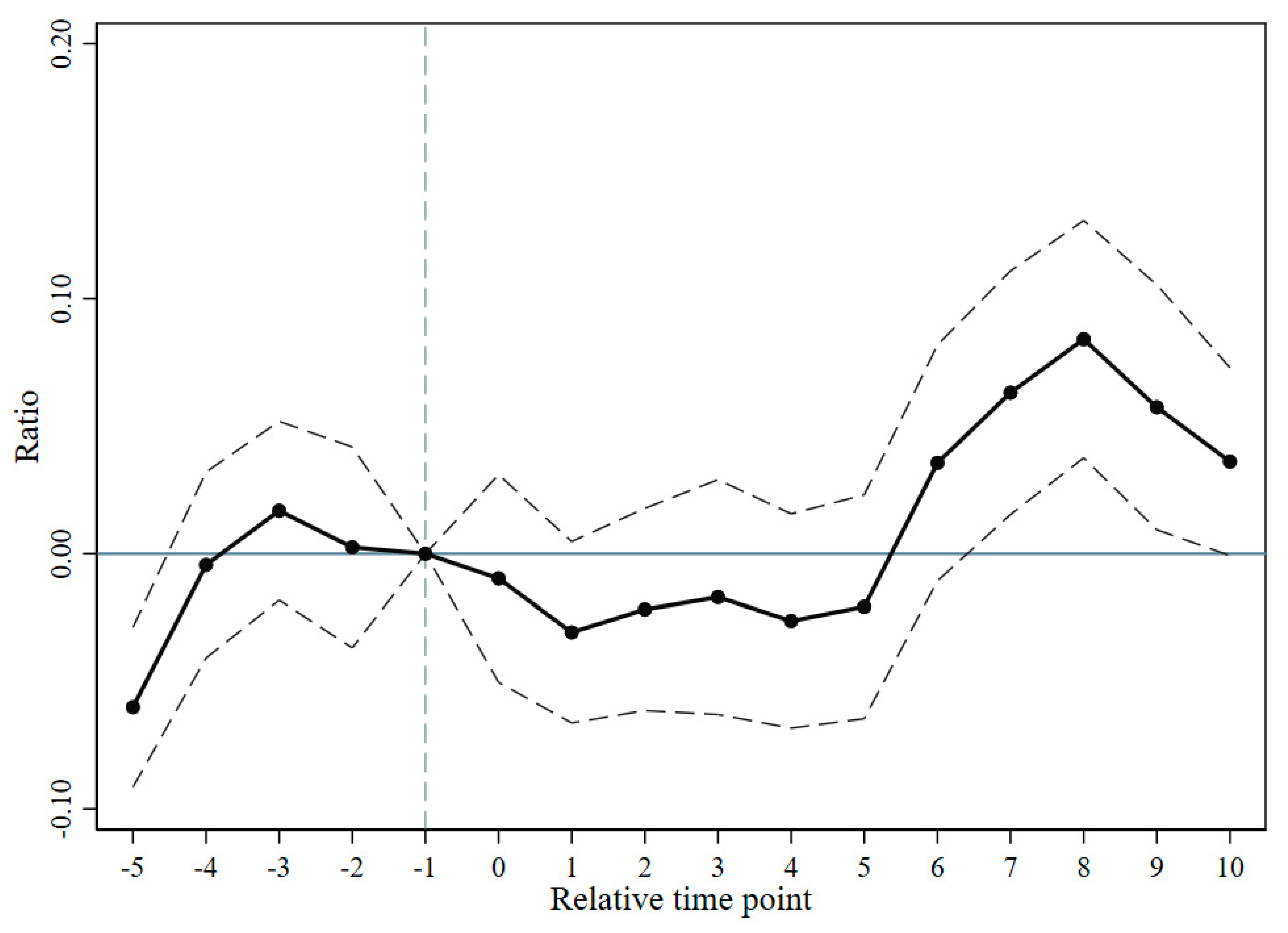 Figure 4) shows that the coefficients from the placebo tests are approximately normally distributed and centred around zero, with values significantly deviating from the actual DID estimate. This suggests that the true estimated effect is unlikely to be the result of random assignments. These findings effectively rule out the possibility of spurious effects driven by random variation and further confirm the robustness of the main regression results.
