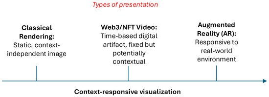 The findings are expected to contribute to the broader discourse on integrating digital visualization technologies into participatory urban design processes, demonstrating their potential to bridge the gap between complex artistic concepts and public understanding. Moreover, by analyzing how different formats mediate the relationship between digital art and its prospective spatial context, the study aims to propose guidelines for improving the accessibility and interpretability of digital artworks within urban environments.