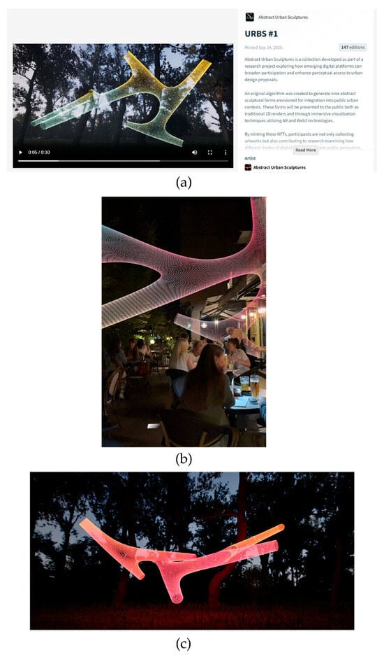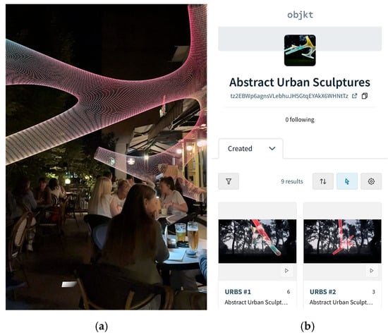 The collection of digital art sculptures, titled Abstract Urban Sculptures was created and published on the Objkt platform, one of the NFT marketplaces (Figure 7b). The collection featured nine digital sculptures, each accompanied by metadata describing its distinctive attributes.