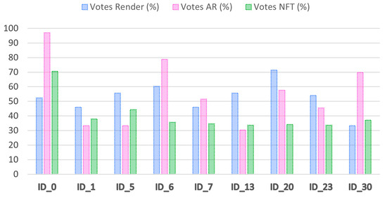 A notable observation from the study is the lower response rate for the Augmented Reality-based survey, which included 33 participants out of 70 direct invitations, compared to the render survey, where 70 direct invitations led to 63 participants, and the Web3 survey, which included 208 participants from 300 invitations. This outcome can be attributed to the higher technical complexity and requirements of engaging with Augmented Reality presentations, which demand compatible devices, sufficient storage, and user familiarity with augmented environments. The lower Augmented Reality response rate validates our observation that technical prerequisites (specifically the requirement for iOS devices and storage space) significantly restrict inclusivity. Conversely, the high volume of NFT responses highlights the “Art for everyone” ethos and high engagement levels of the Web3 community.